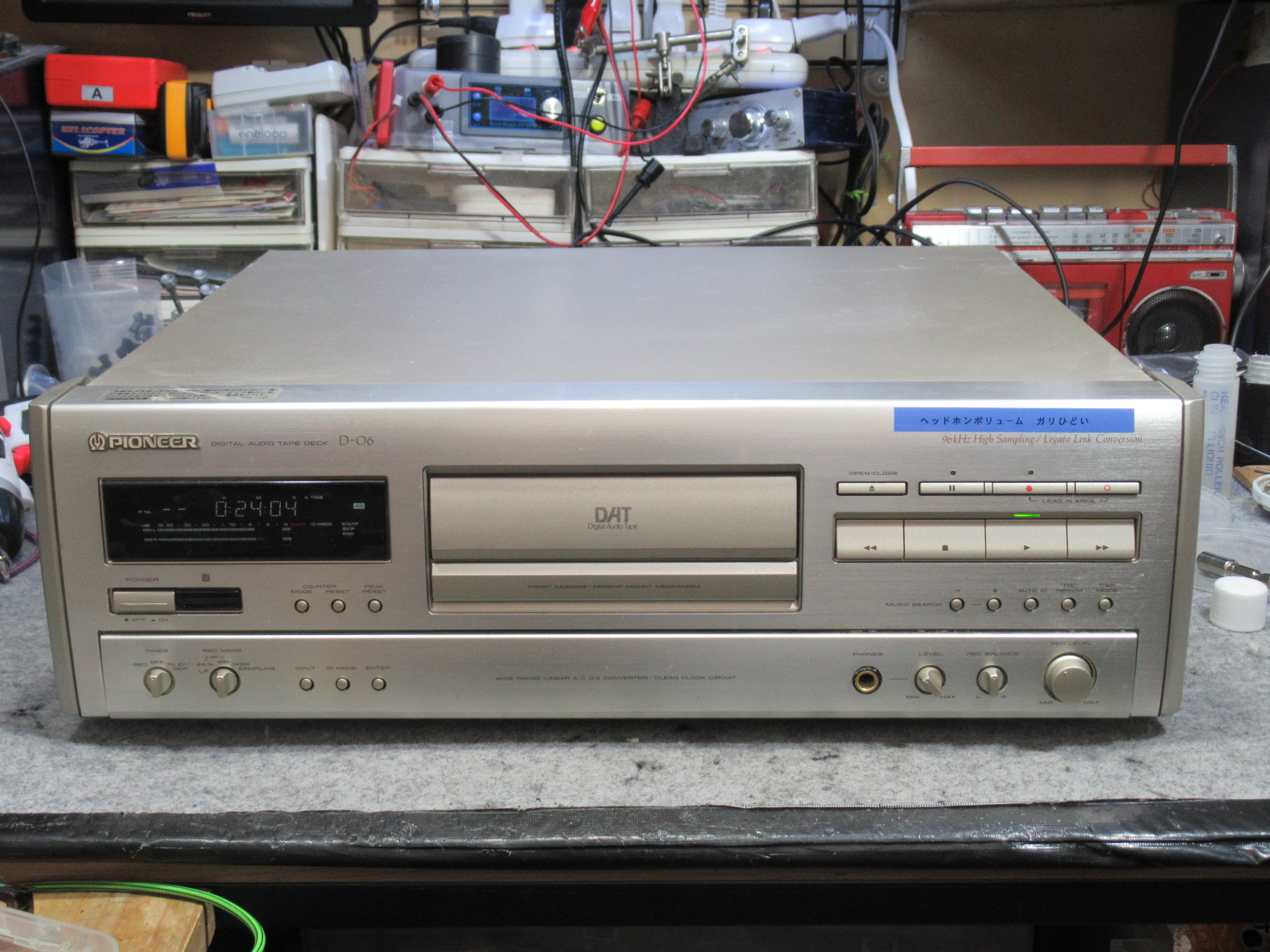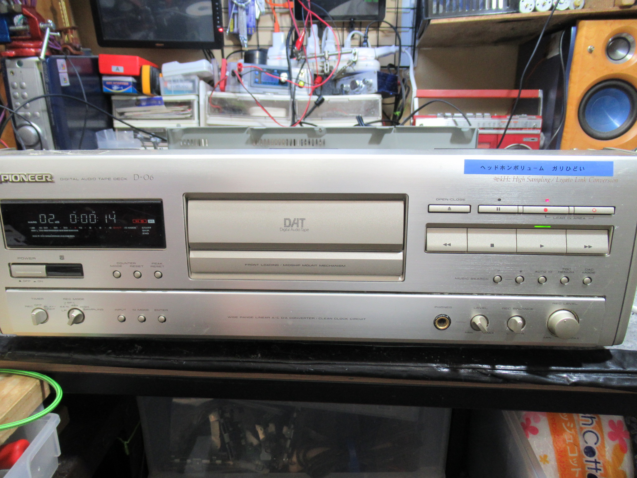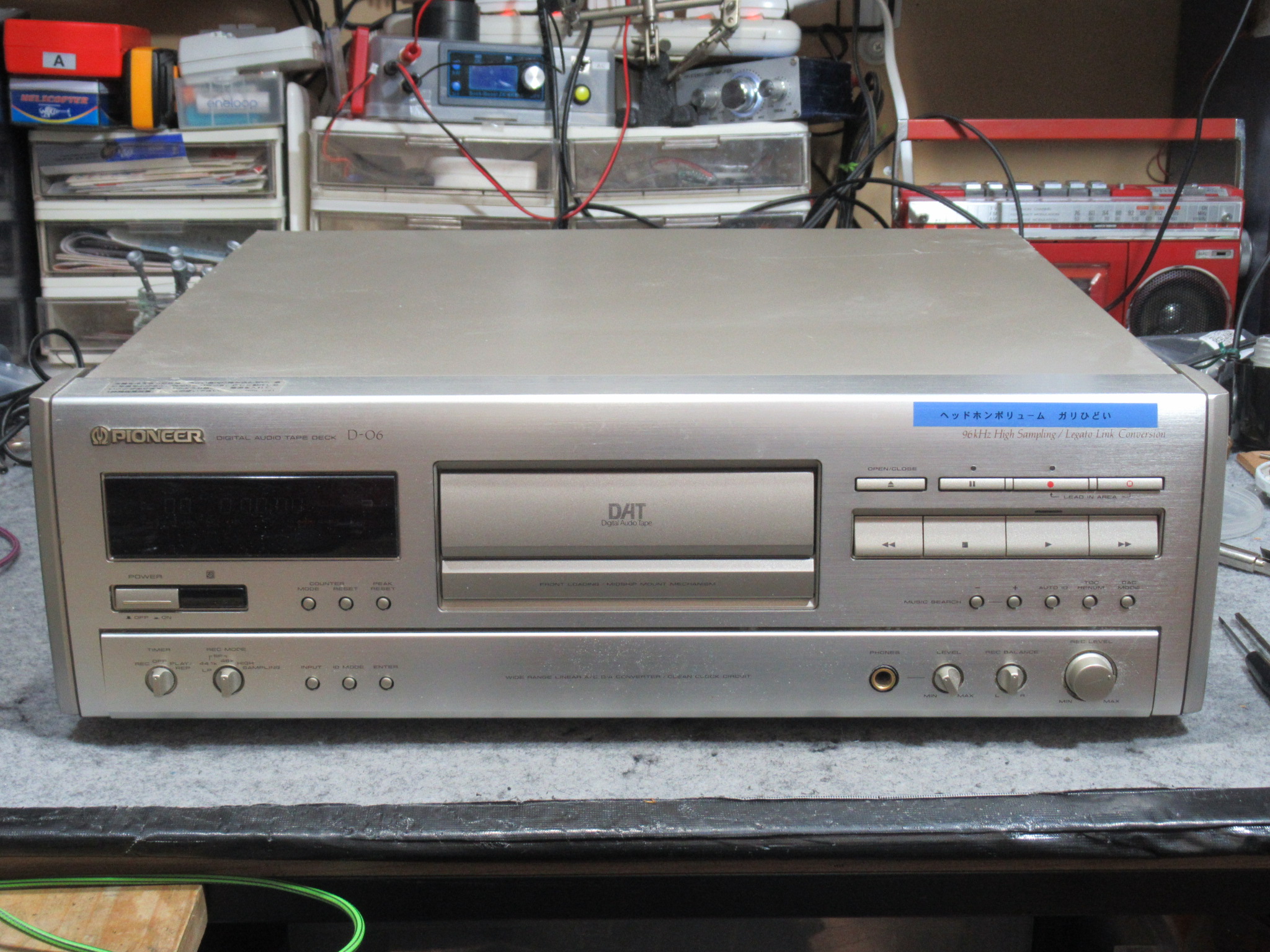 PIONEER製DATデッキ、D-06です。 知人から譲り受けた機器ということですので、詳細は不明です。 テープをセットすると、「カチャカチャ・・・・」と誤作動を繰り返し、イジェクトすらもなかなか難し …