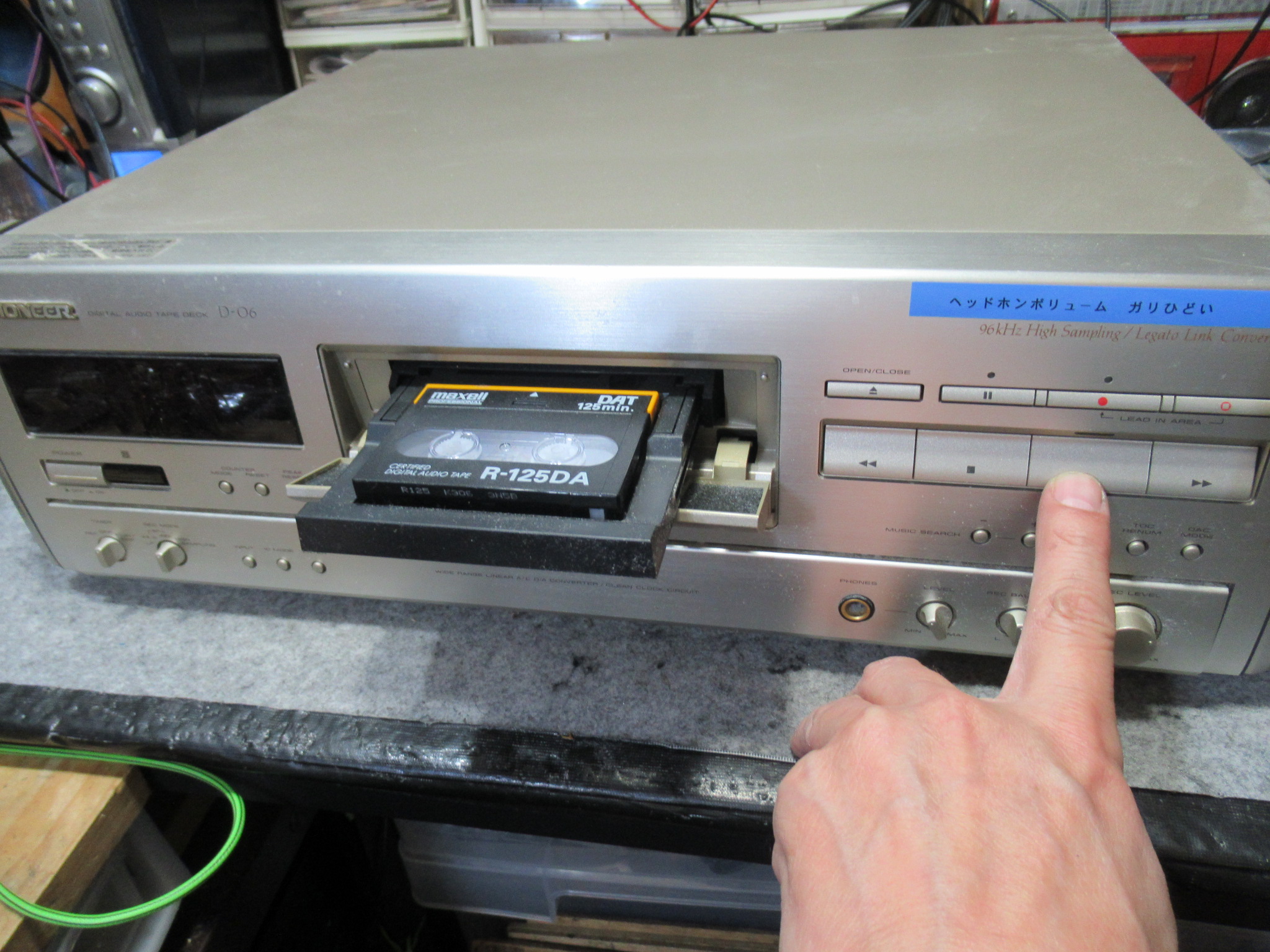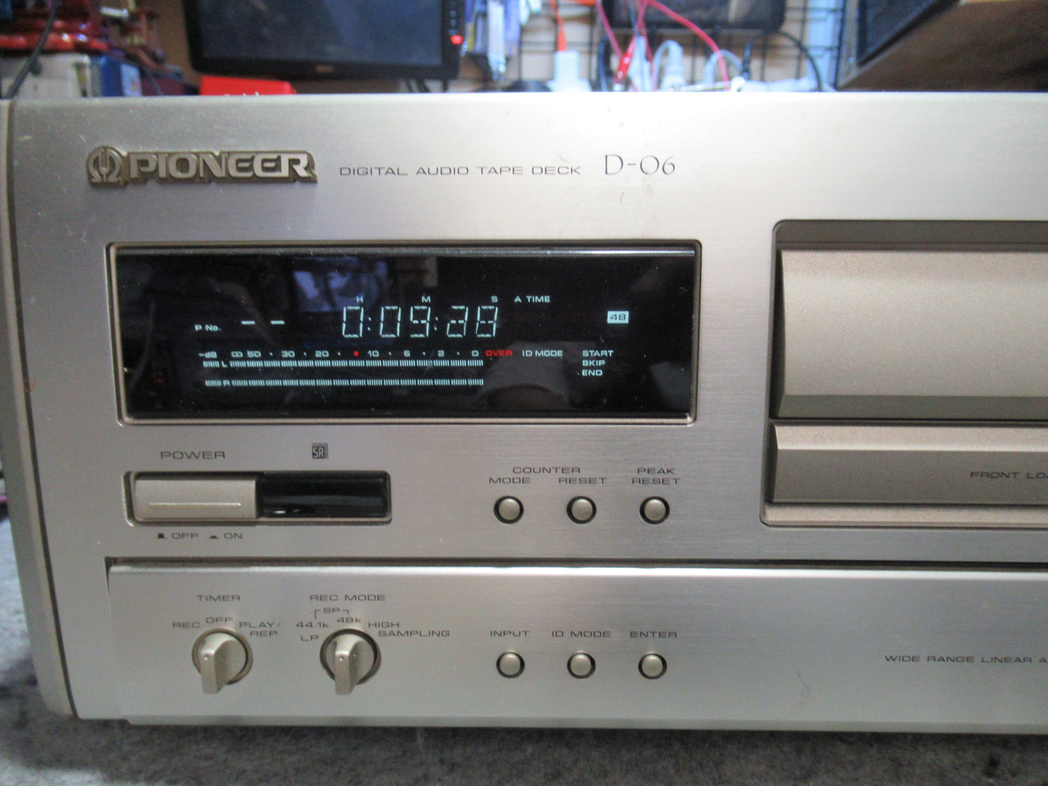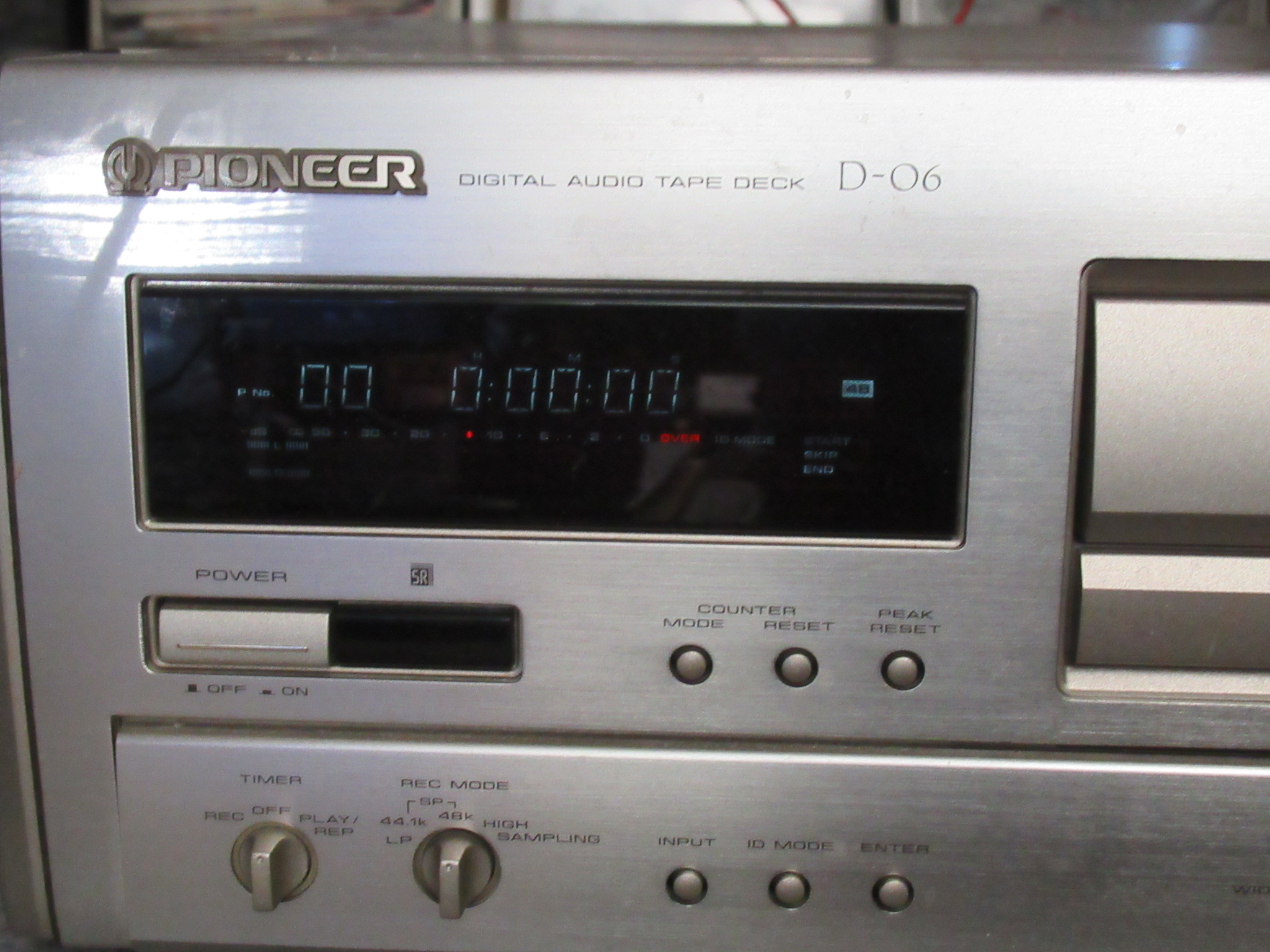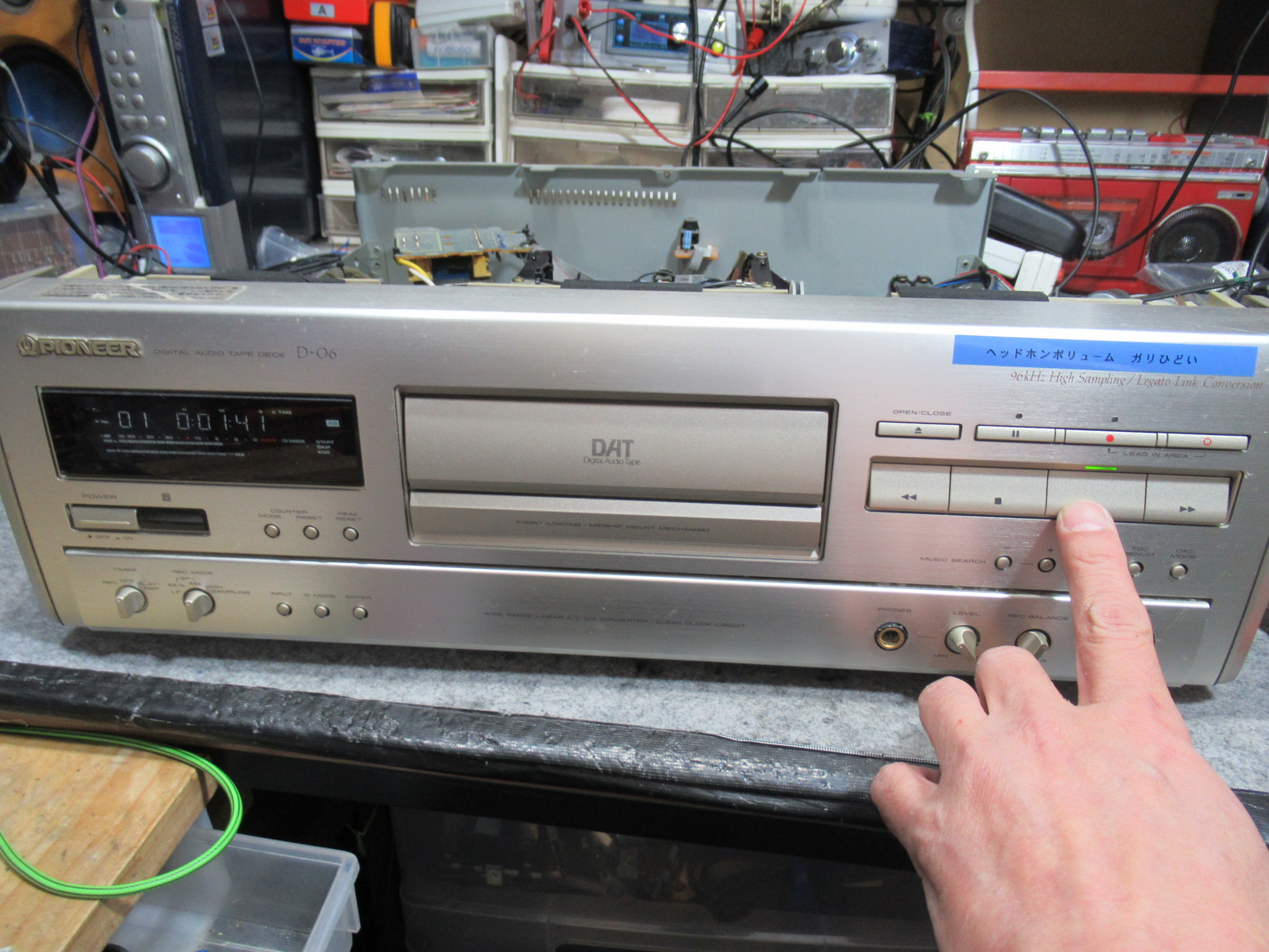 PIONEER製DATデッキ、D-06です。 知人から譲り受けた機器ということですので、詳細は不明です。 テープをセットすると、「カチャカチャ・・・・」と誤作動を繰り返し、イジェクトすらもなかなか難し …