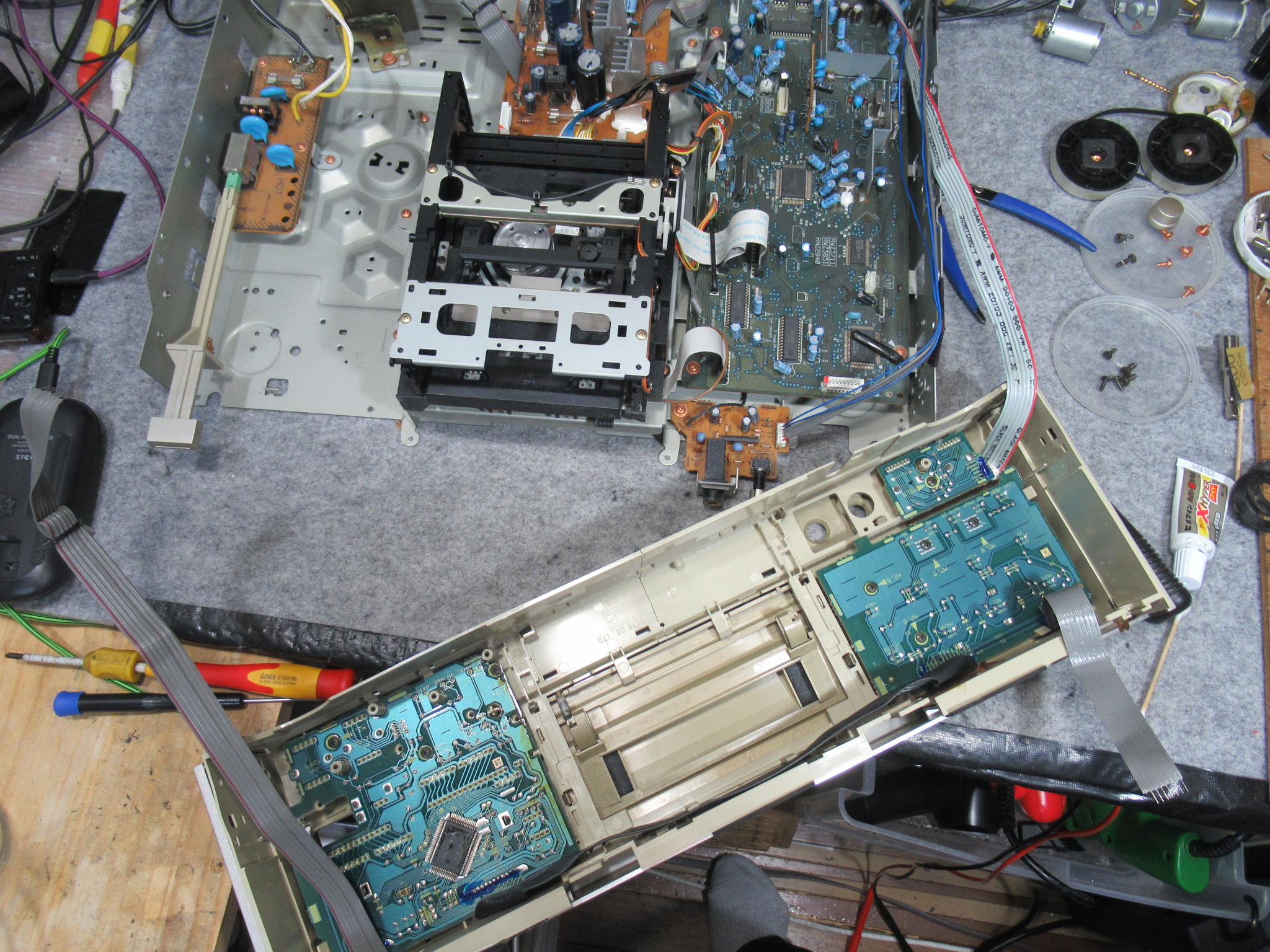先日当店でD-07Aを修理されたお客様から、予備機として使用していたというD-06の修理依頼をいただきました。 蓋の開閉が不調になったのち、ほどなくして不動となったということです。 テープをセットする …