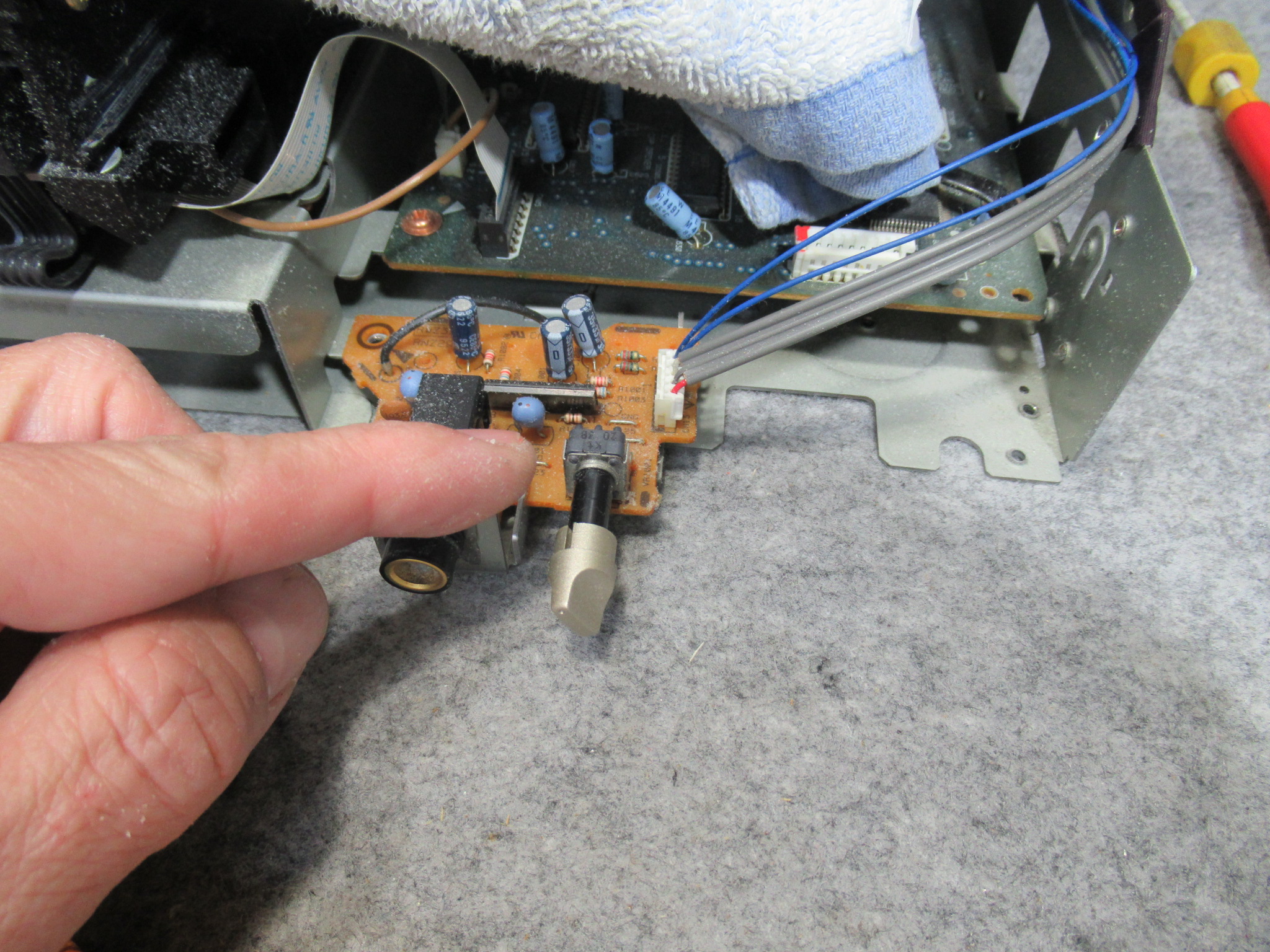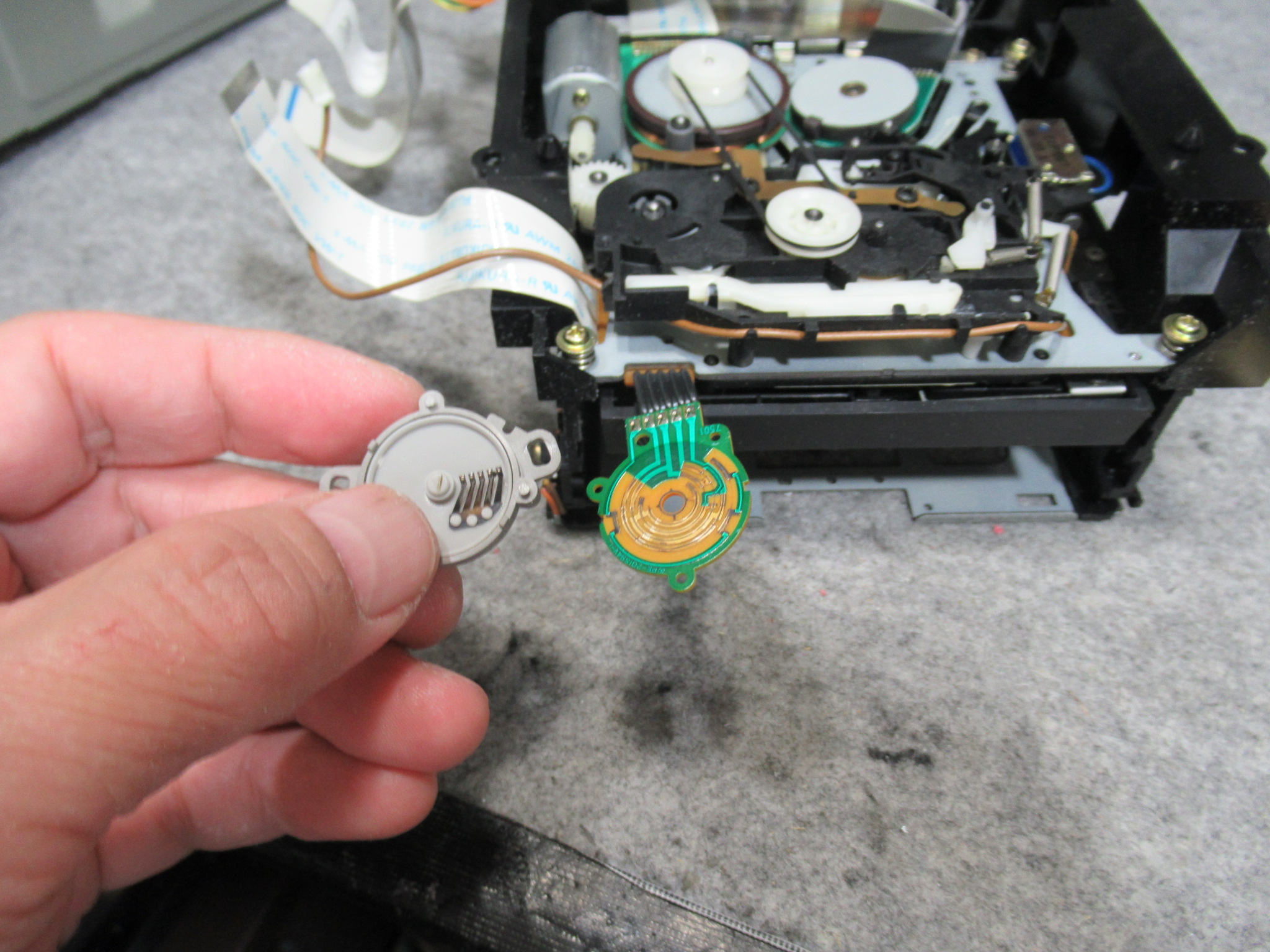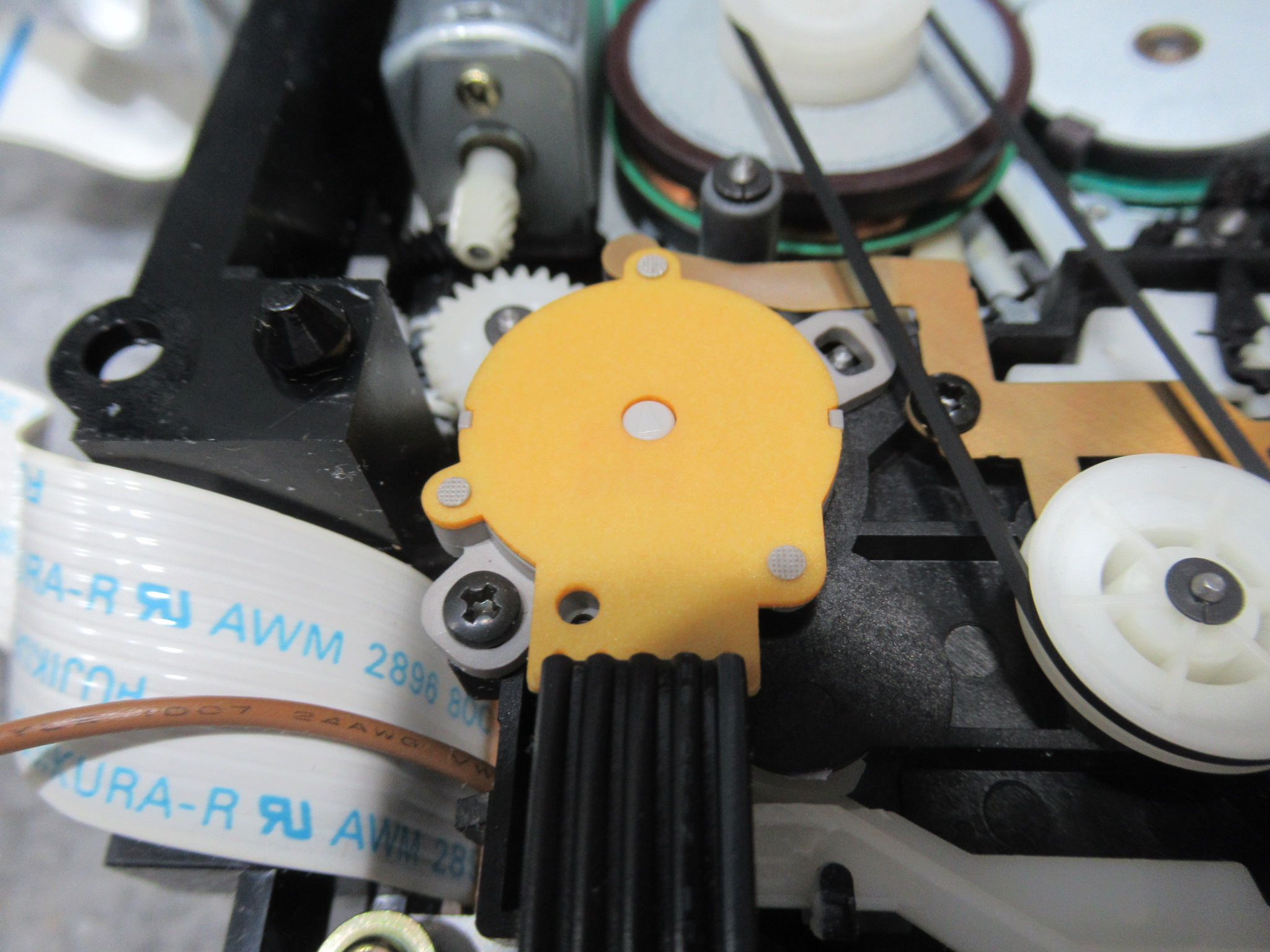 裏返します。メカの動作状況を検知するロータリーエンコーダーです。ここが接触不良を起こしていると考えられます。