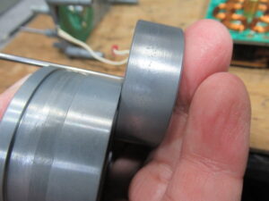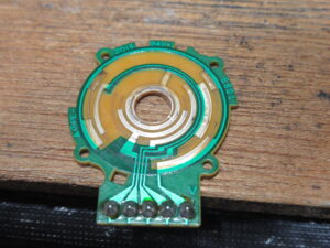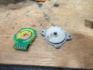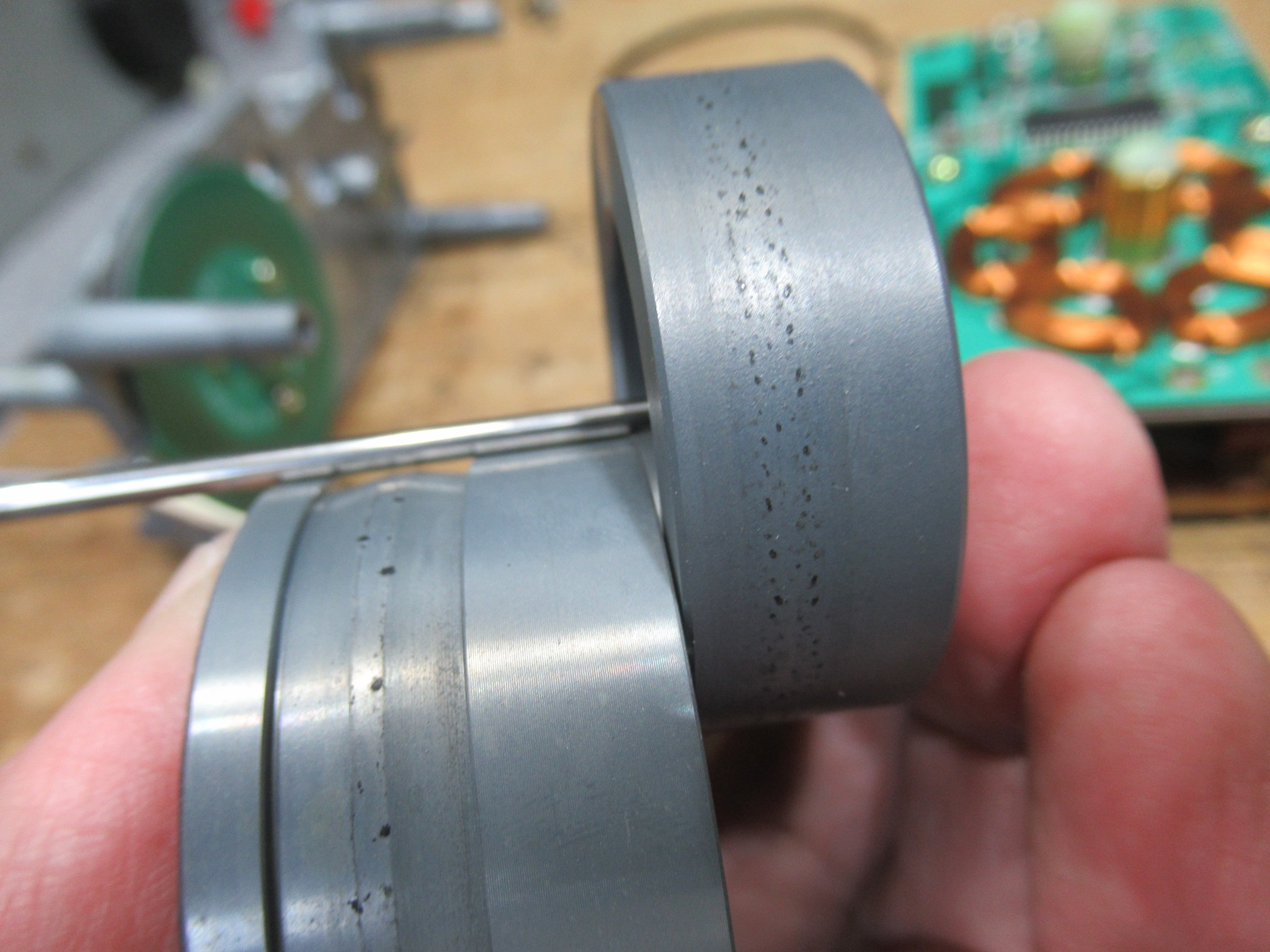 わかりにくいかもしれませんが、ベルトの掛かっていたプーリー表面に何かが塗られています。スリップ対策で接着剤か何かを処置されたようです。