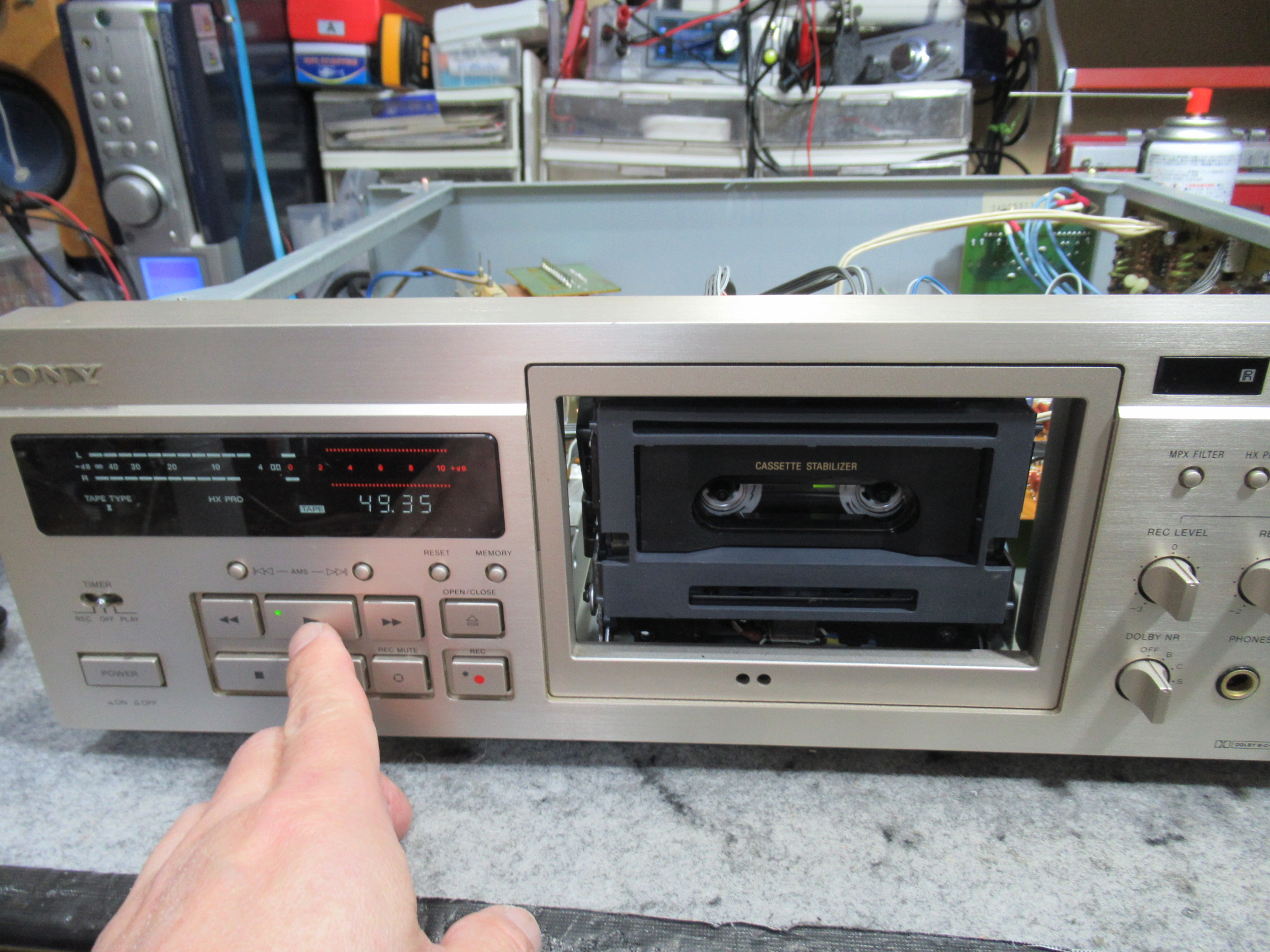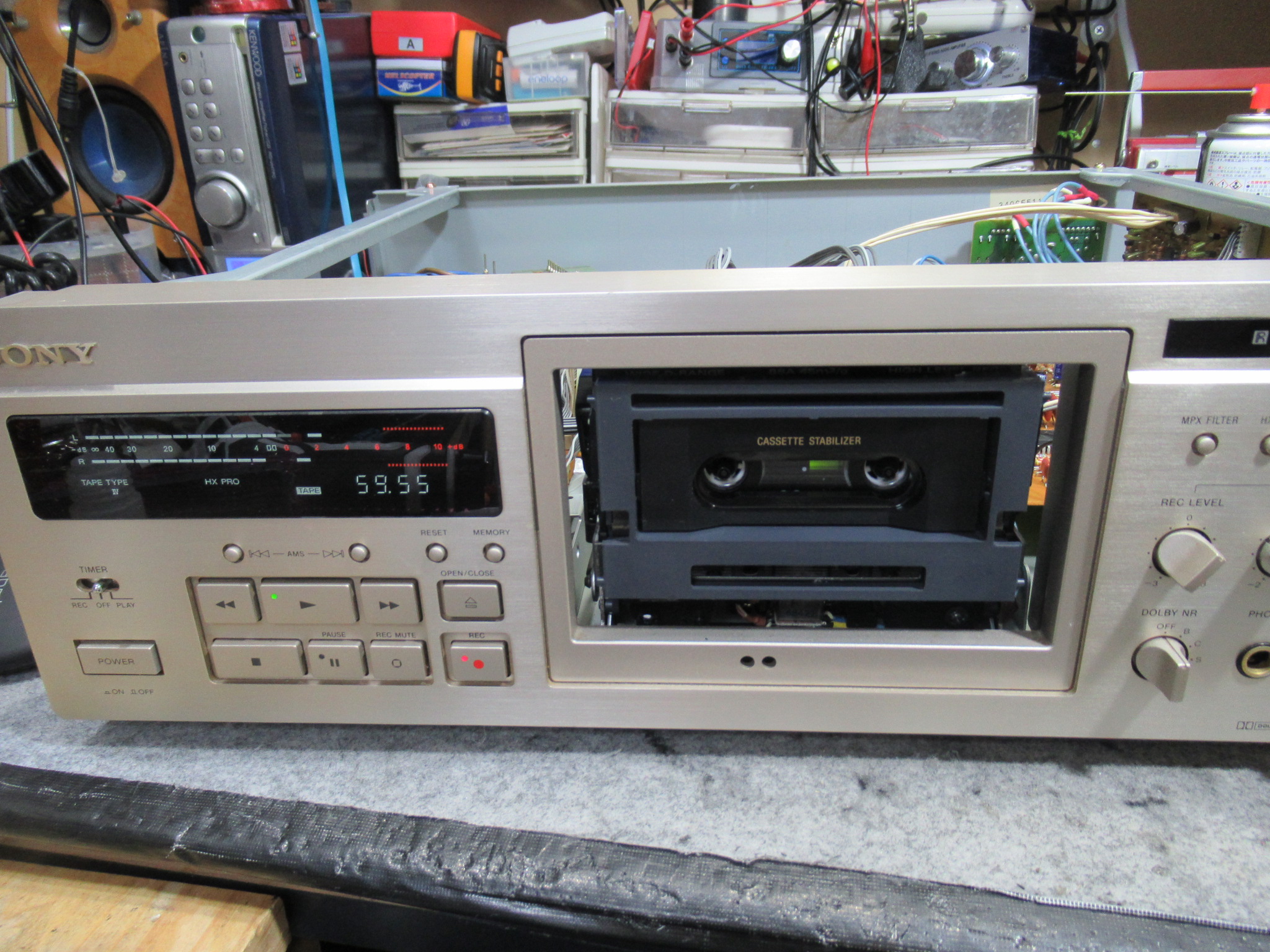 SONYのTC-KA3ESです。 ヘッドが上がらなくなったということです。今回は全体的なメンテナンスもご依頼がありましたので、当店の「リフレッシュメニュー」にて整備を行います。 再生不可、早送り巻き戻 …