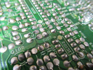 基板を取り外して半田箇所の点検を行ったところ、一か所、いわゆる目玉半田になっていました。それで接触不良になっていたようです。