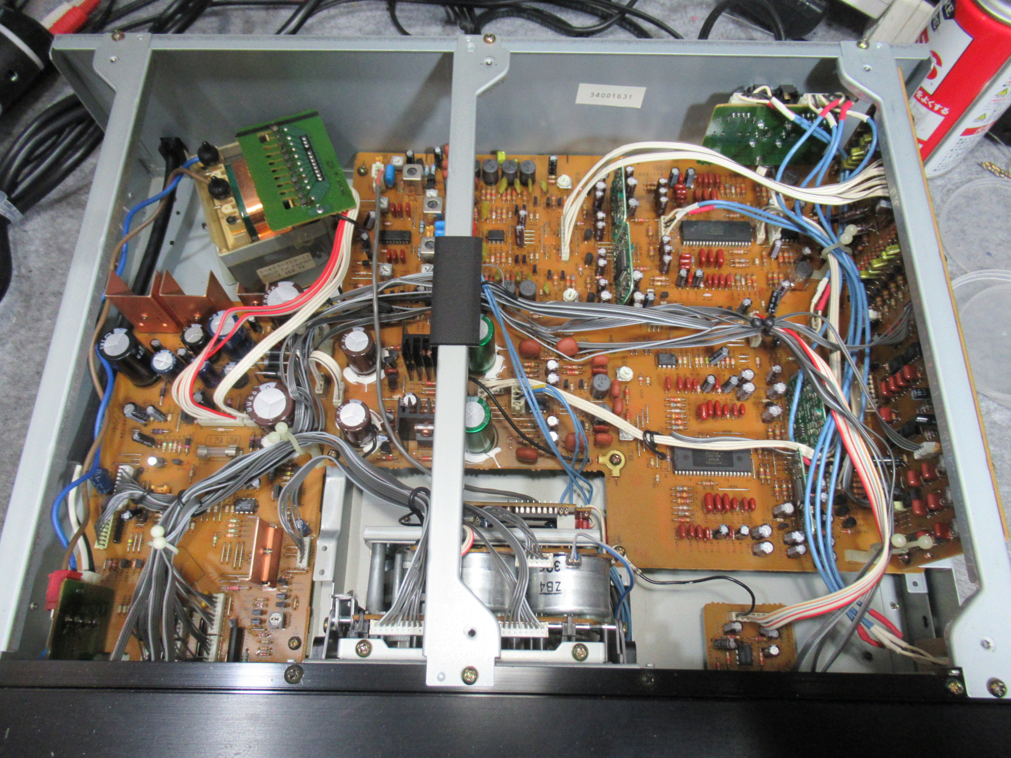 SONY製3ヘッドデュアルキャプスタンカセットデッキ、TC-KA3ESです。 ヘッドが上がらず再生不能になったということです。 点検時にRECVOLを回すと、ツマミがフロントパネルと擦れて、回転が重く …