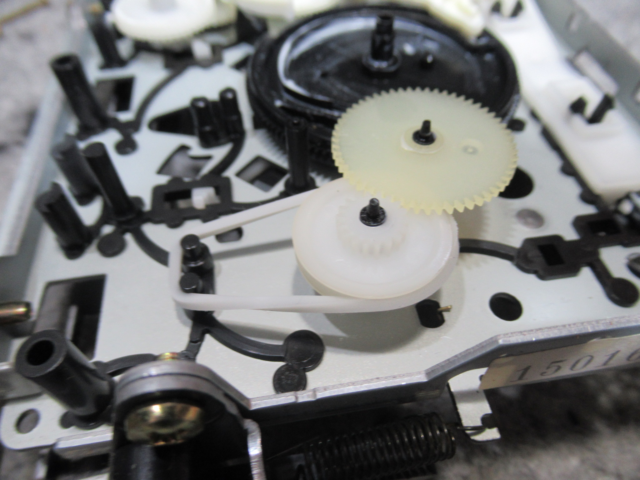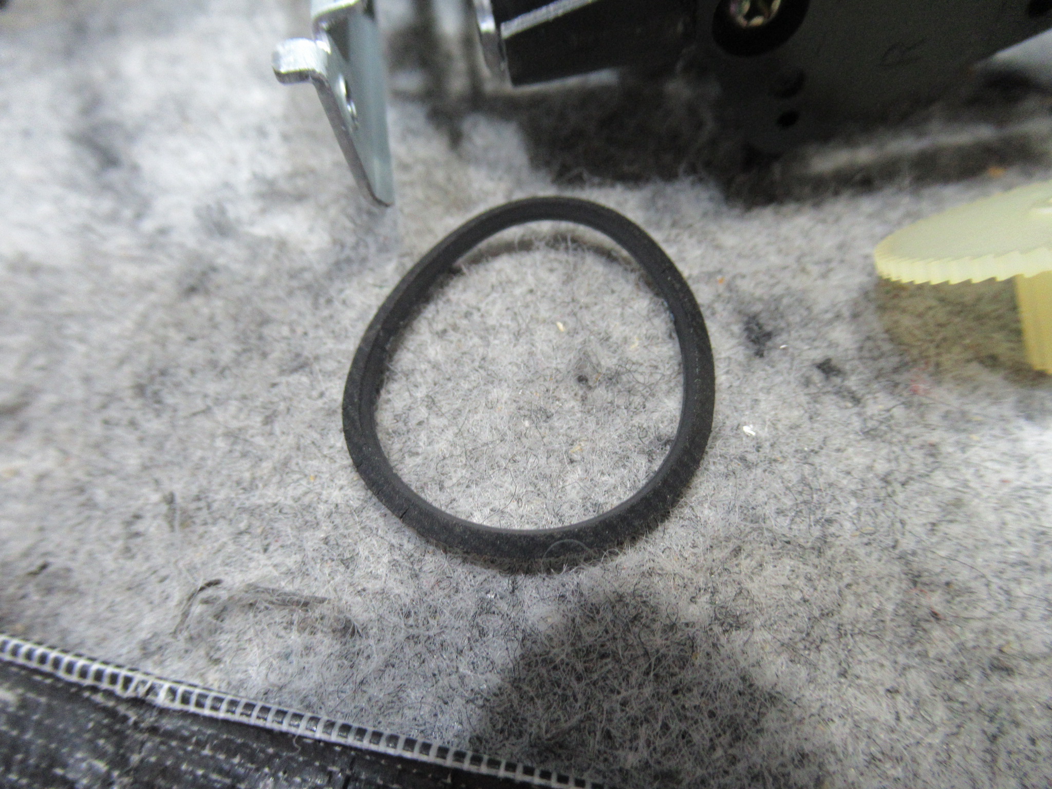 無数のひび割れが生じていて切れてしまいました。ピンチローラーもそうでしたが、2年半ほどでひび割れが生じるというのは、材質または環境の問題と思われますが、検証のしようがありません。