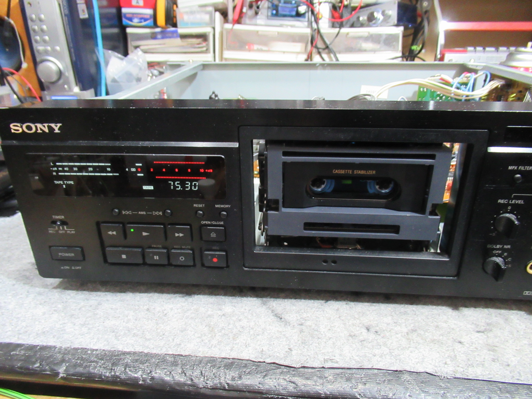 SONYのTC-KA3ESの修理依頼をいただきました。 長期間、保管している間に故障していたということです。 電源が入った状態ですが、ディスプレイが点灯しません。 イジェクトボタンを押すと、かすかにモ …