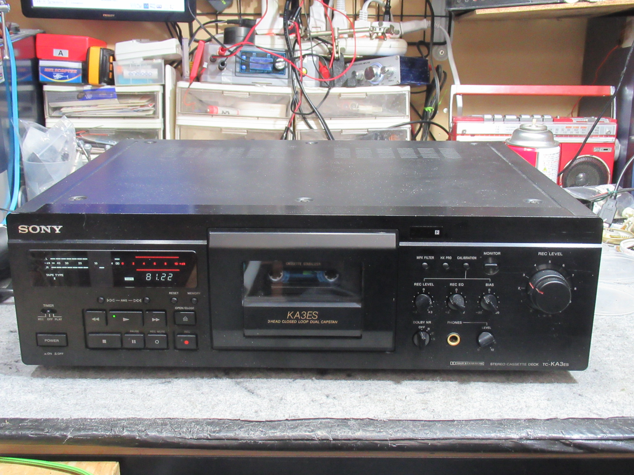 3年ほど前に大手リサイクル店で購入されたという、SONYのTC-KA3ESです。 メーターが振れなかったり、録音レベルがMAXになったりということです。ただし、モニター切替やレベルツマミを回すと改善さ …