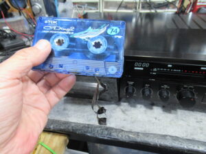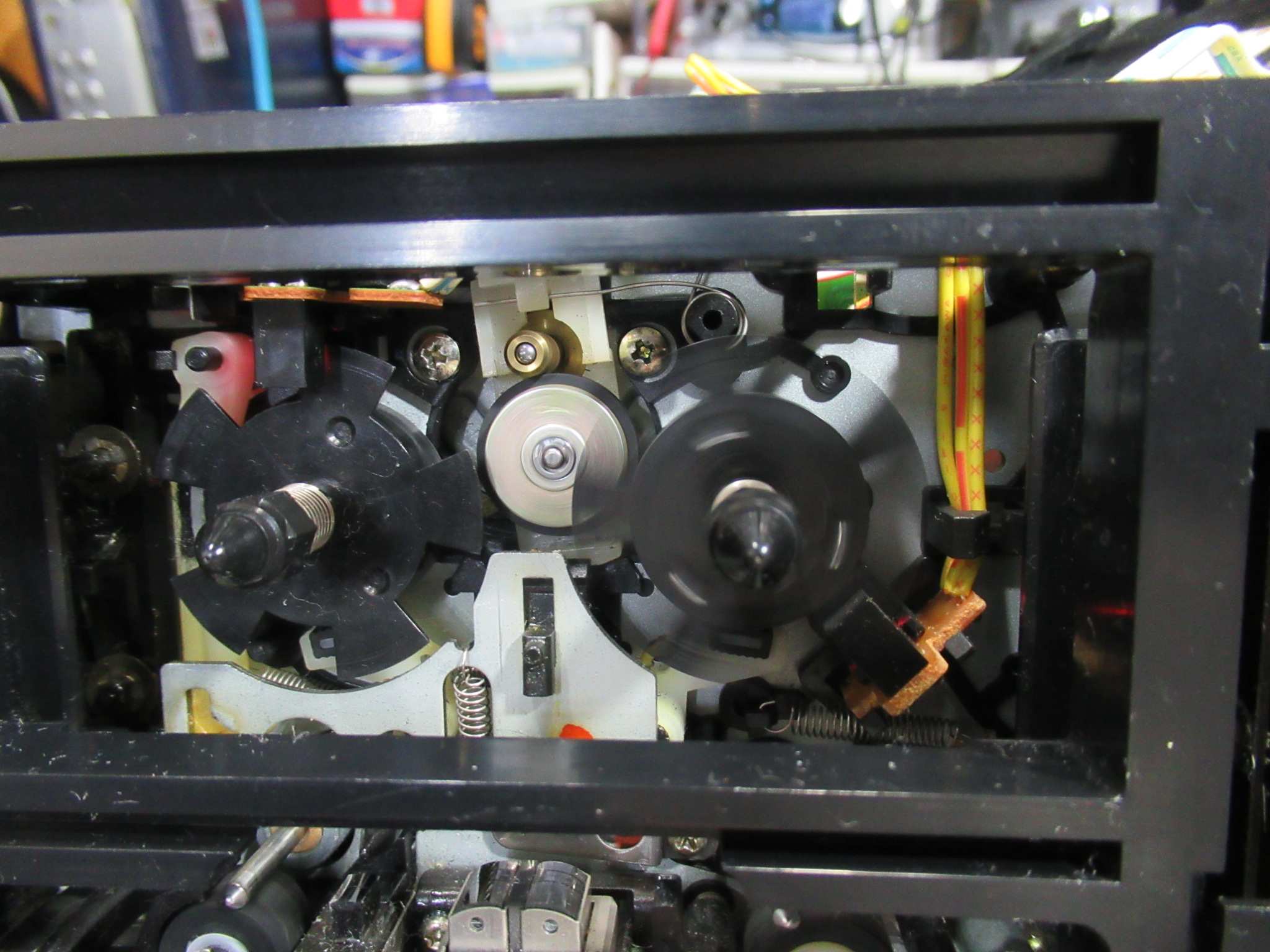 テープセットし、再生を開始しましたが、リールが回転しないため写真のような状態になってしまいます。