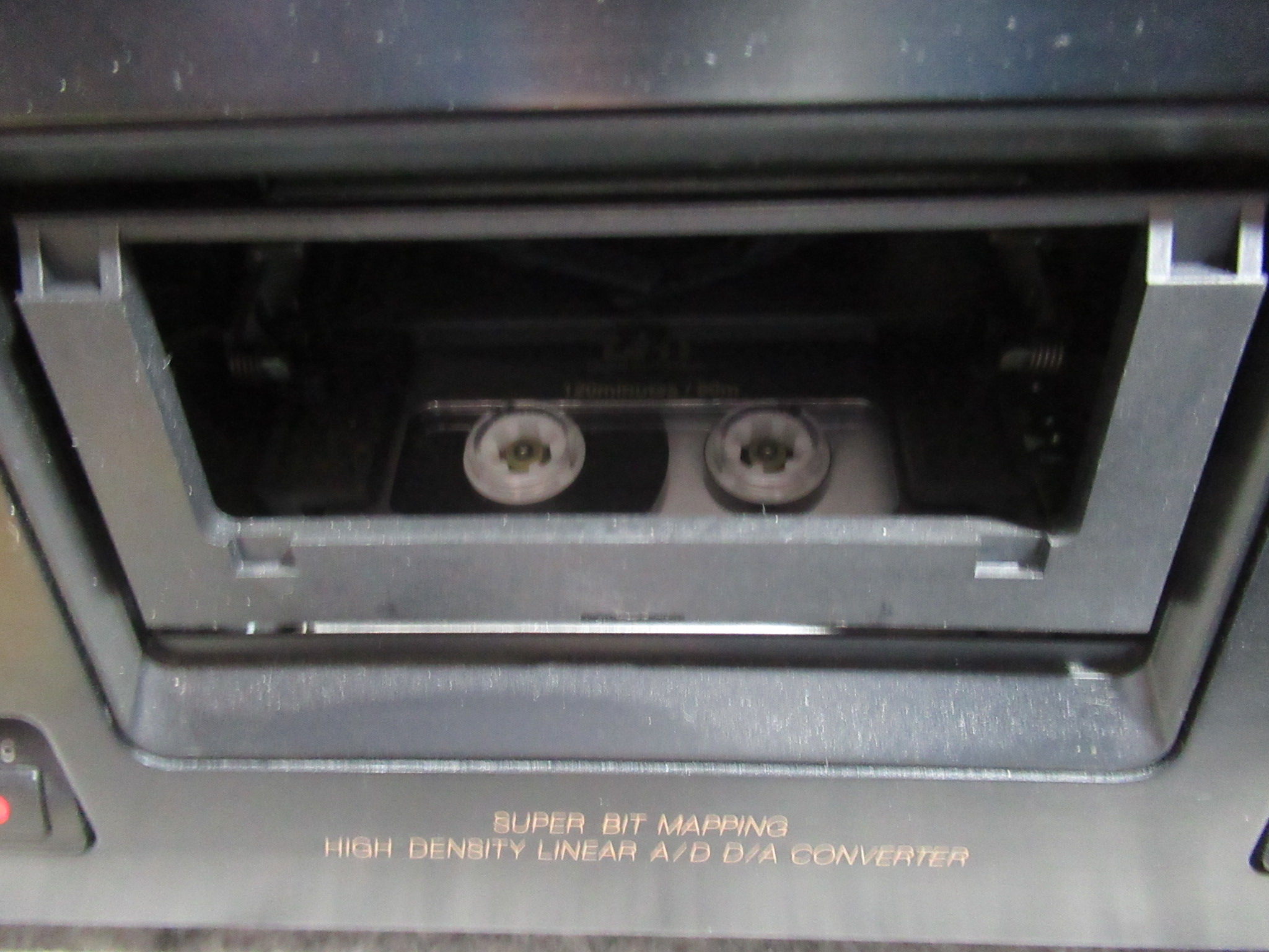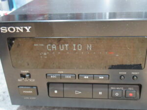 電源を入れるとCAUTIO表示となります。テープは閉じ込められたままです。