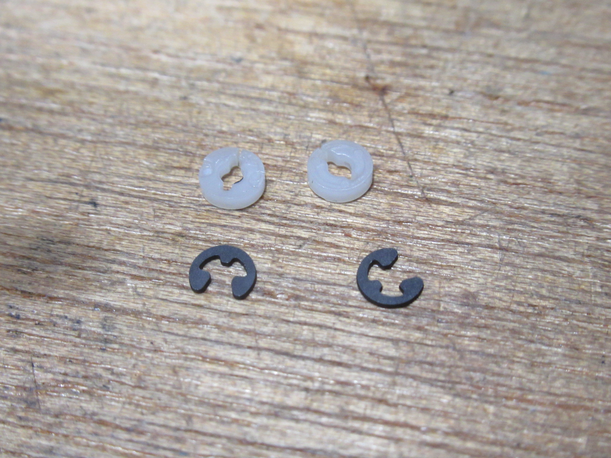 留め具にひびが入って今にも脱落しそうですので、鋼製のEリングと置換します。