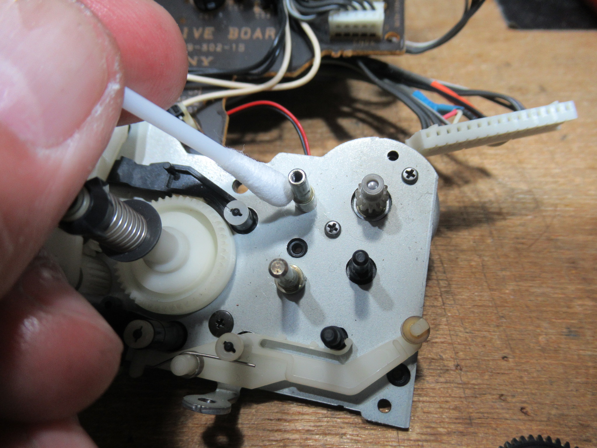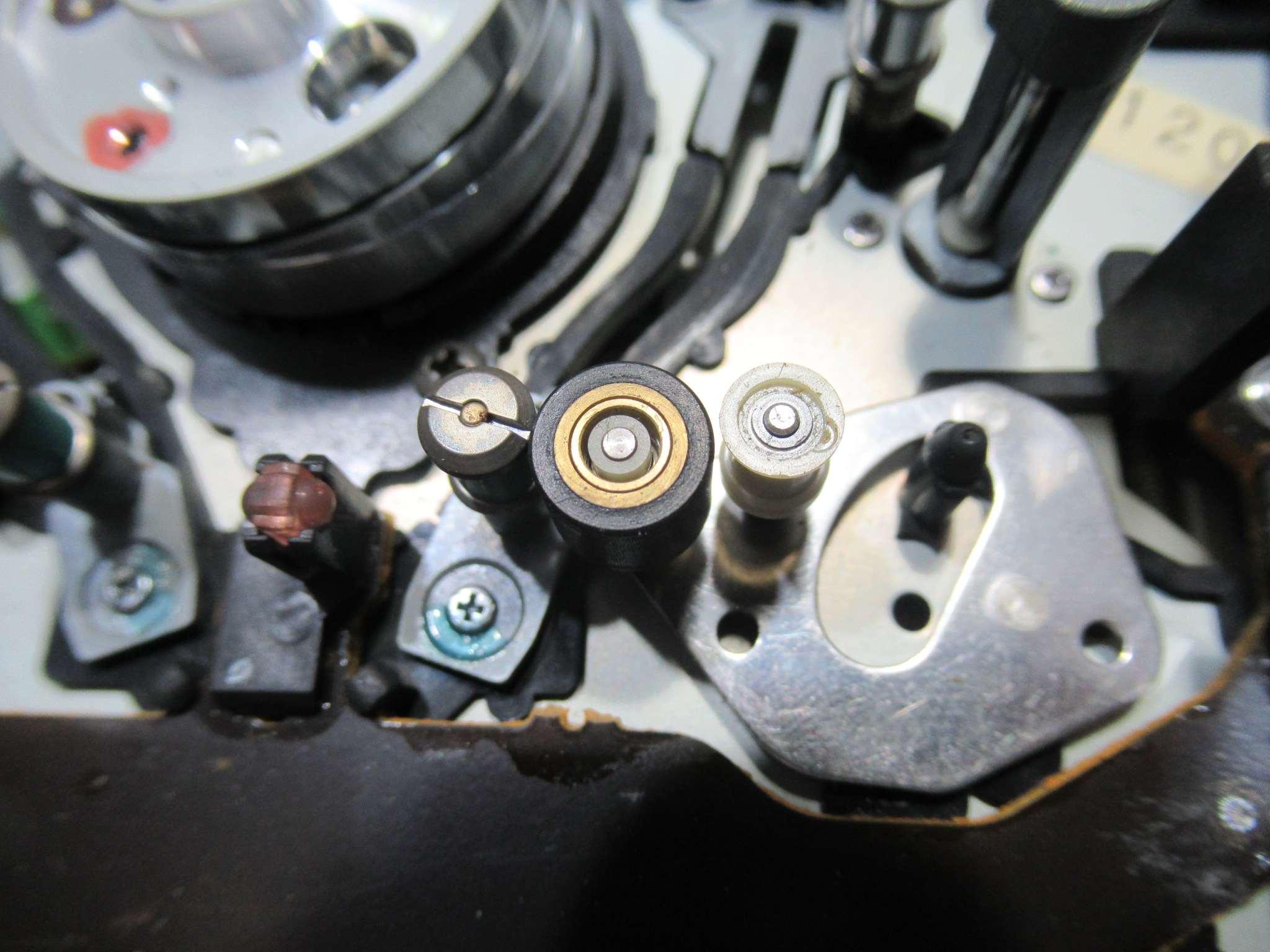 写真中央部のカートリッジ検出スイッチに接点復活剤を処置します。