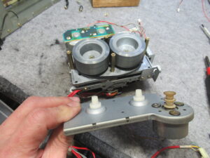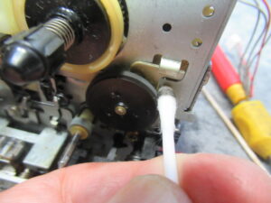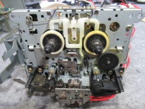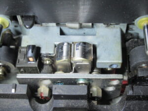 ここで気がつきましたが、このデッキは録再独立ヘッドですが、録音ヘッドがかなり前方に傾いています。自然にはこのようにはなりませんので、何か事情があったのでしょうか?