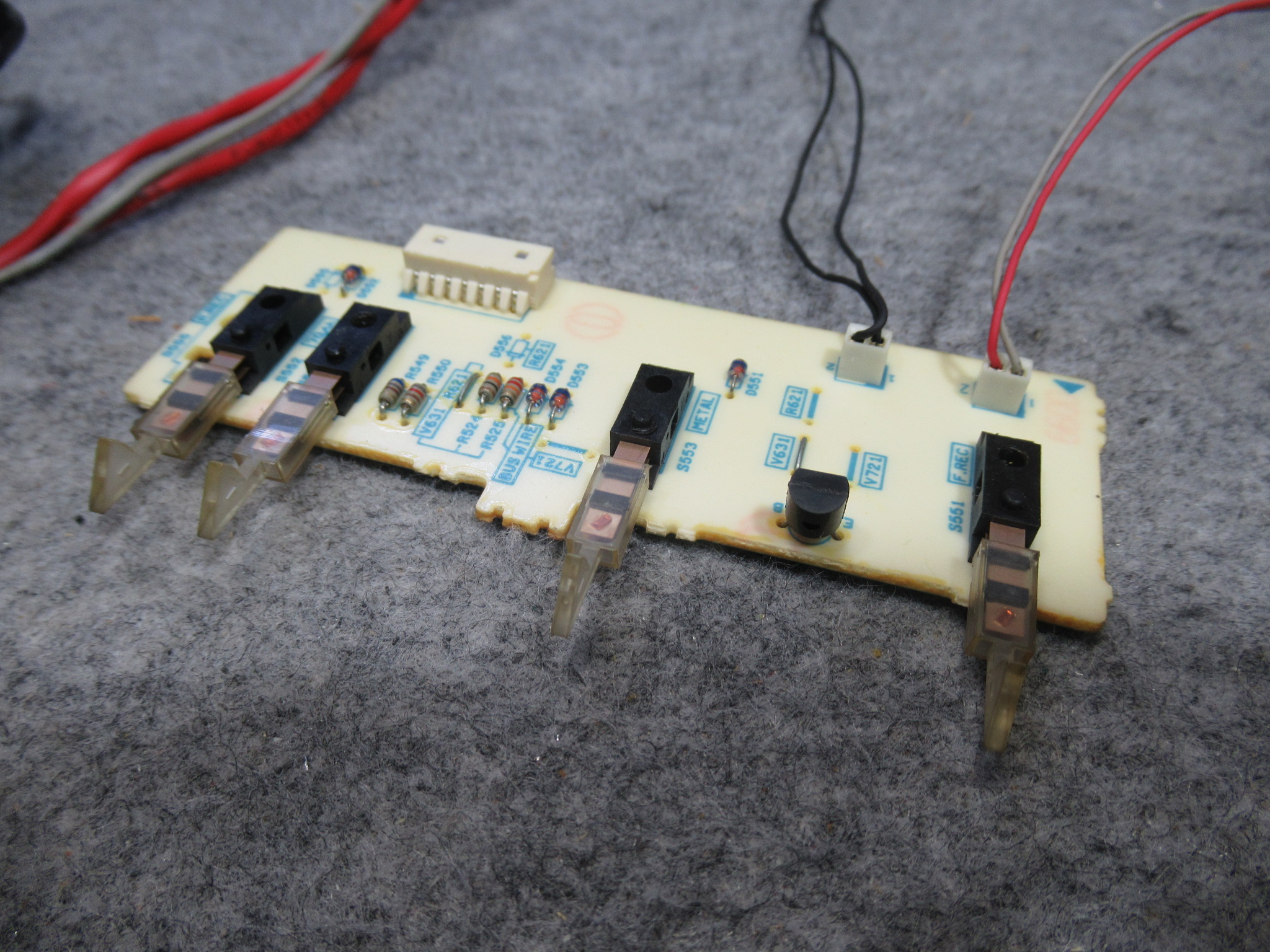 これはオートセレクタ用の基板で、メカの上に取り付けられているものですが、ビクターの機器のメカ取り出しは複雑ですので、予め取り外しておくと無用のトラブルを避けることができます。