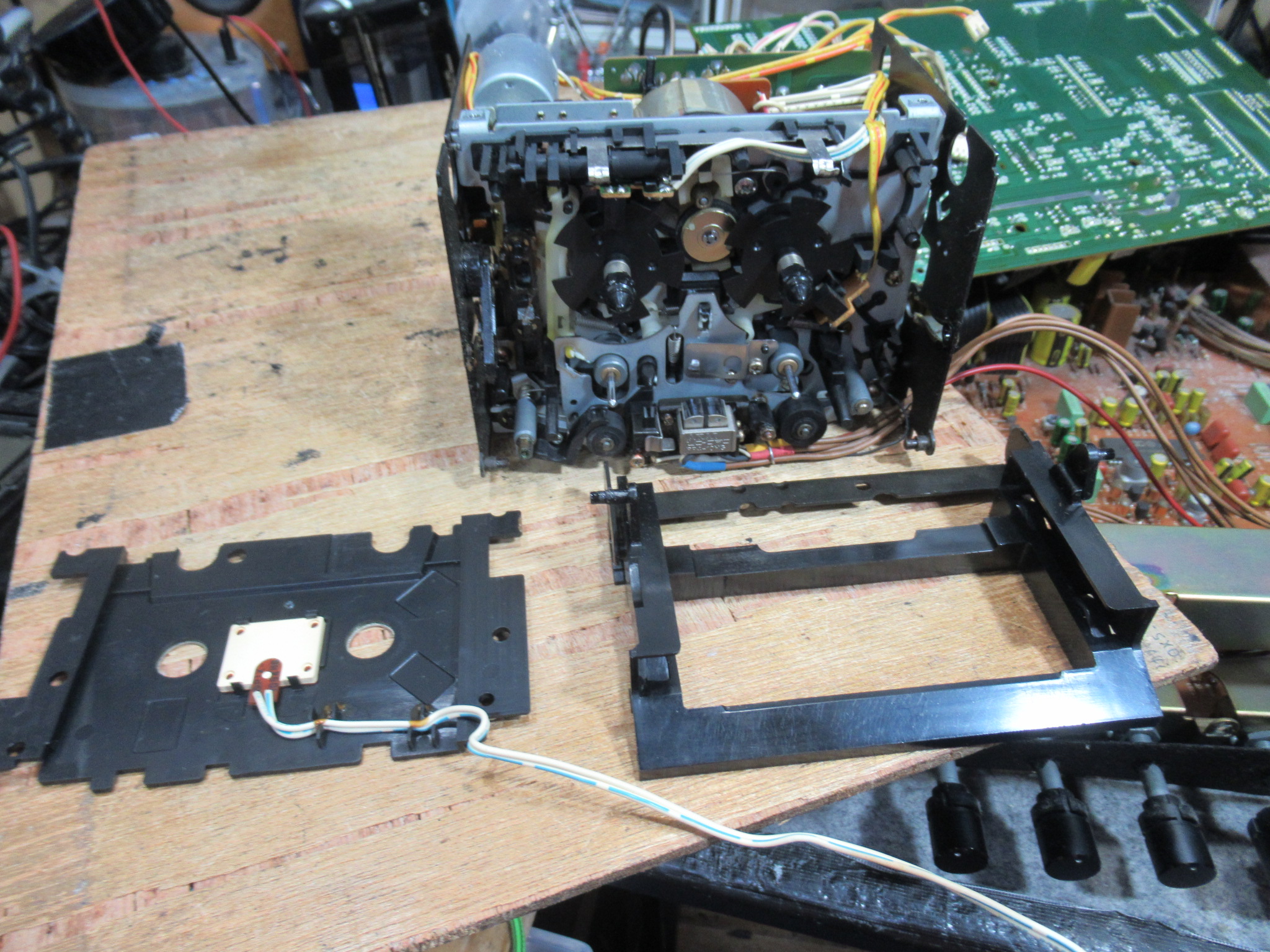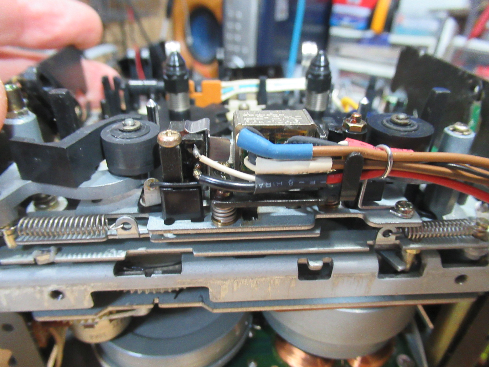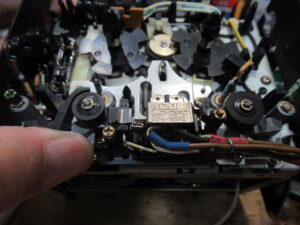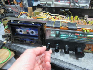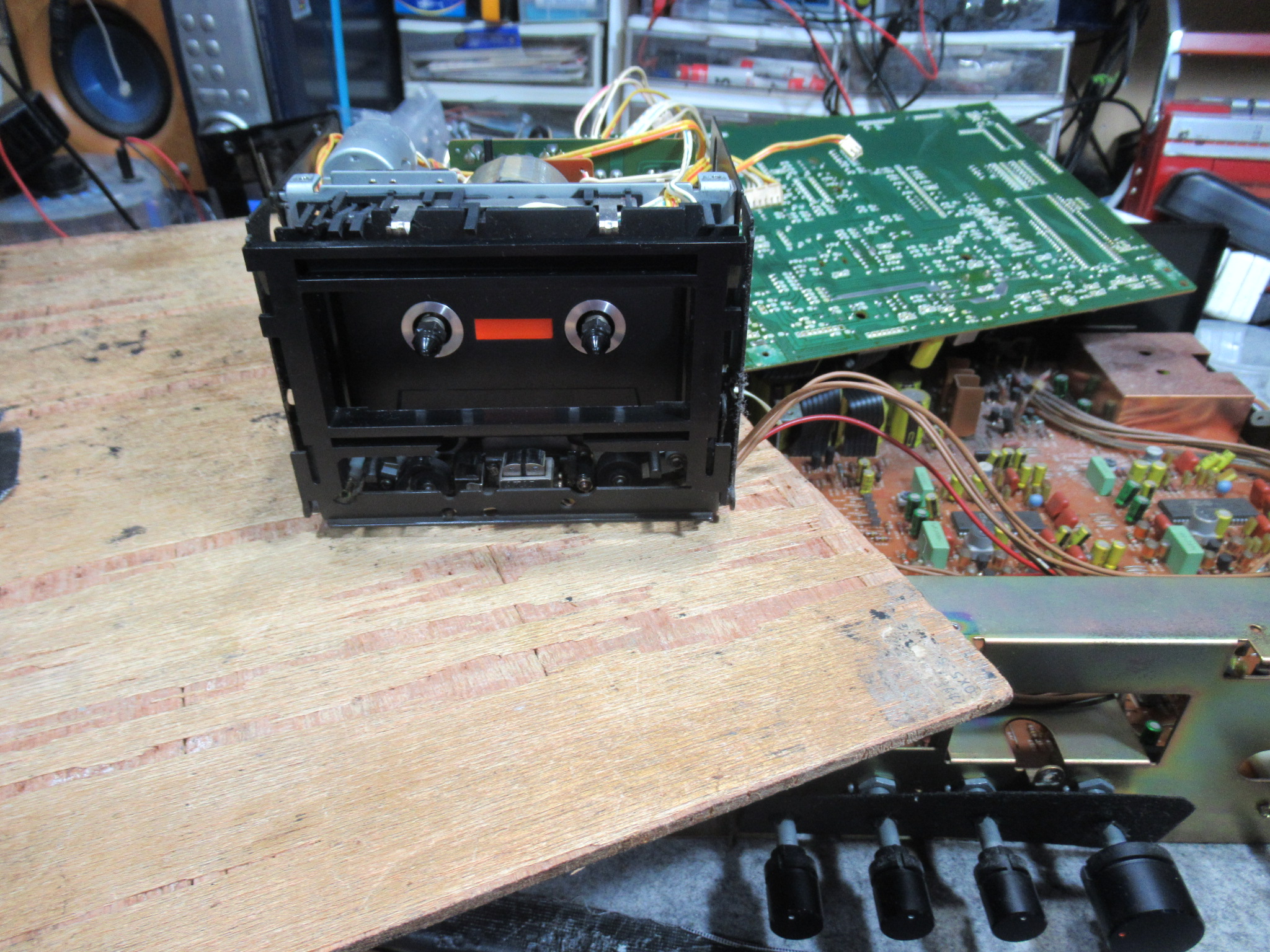 メカを元に戻して動作確認を行います。テープ走行とLINEOUT出力は良好ですが、ヘッドホン出力の右CHの音量調整ができません。