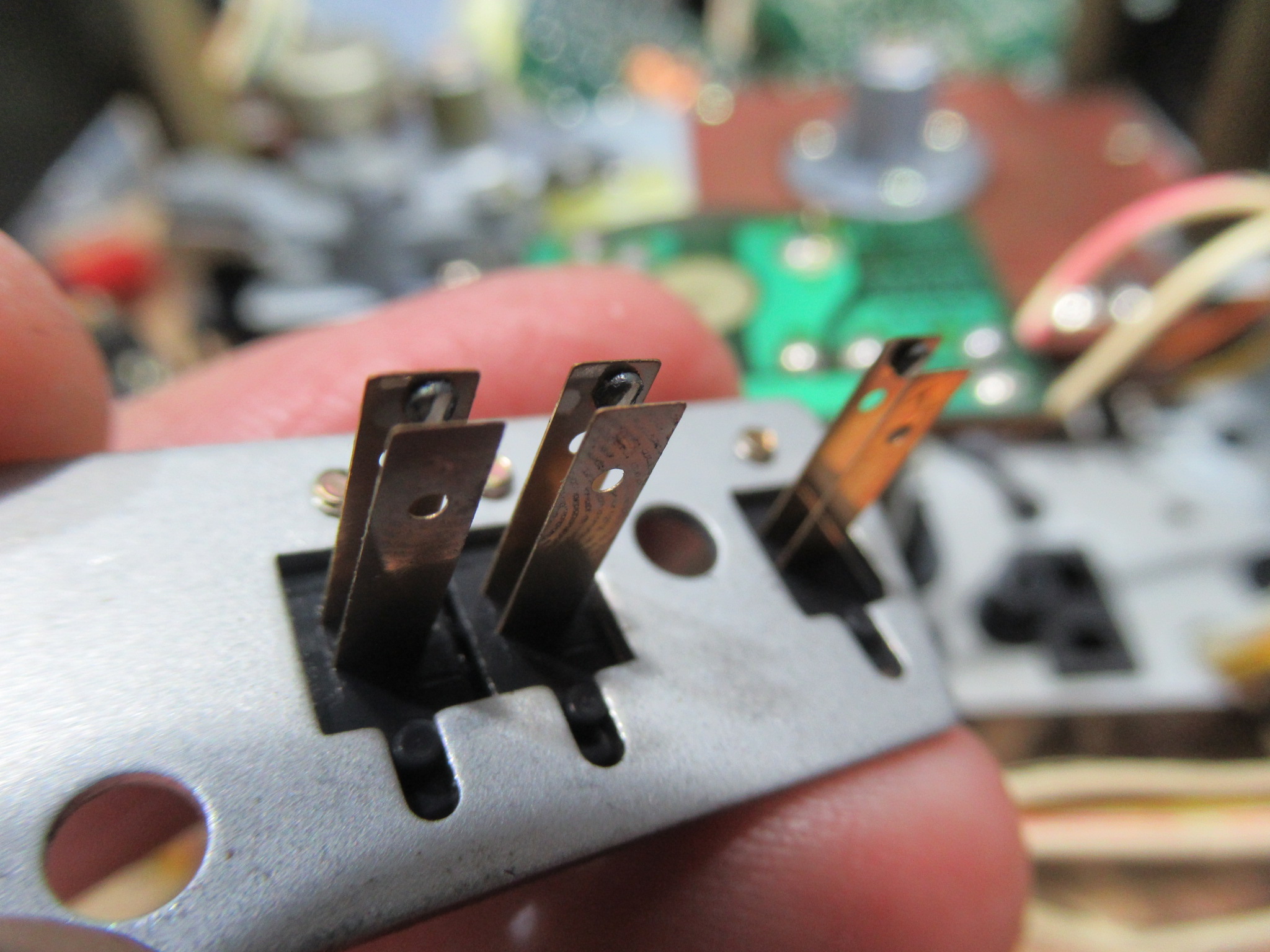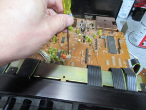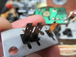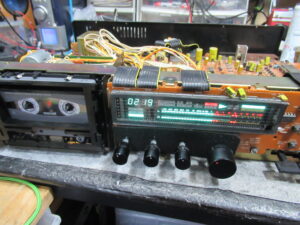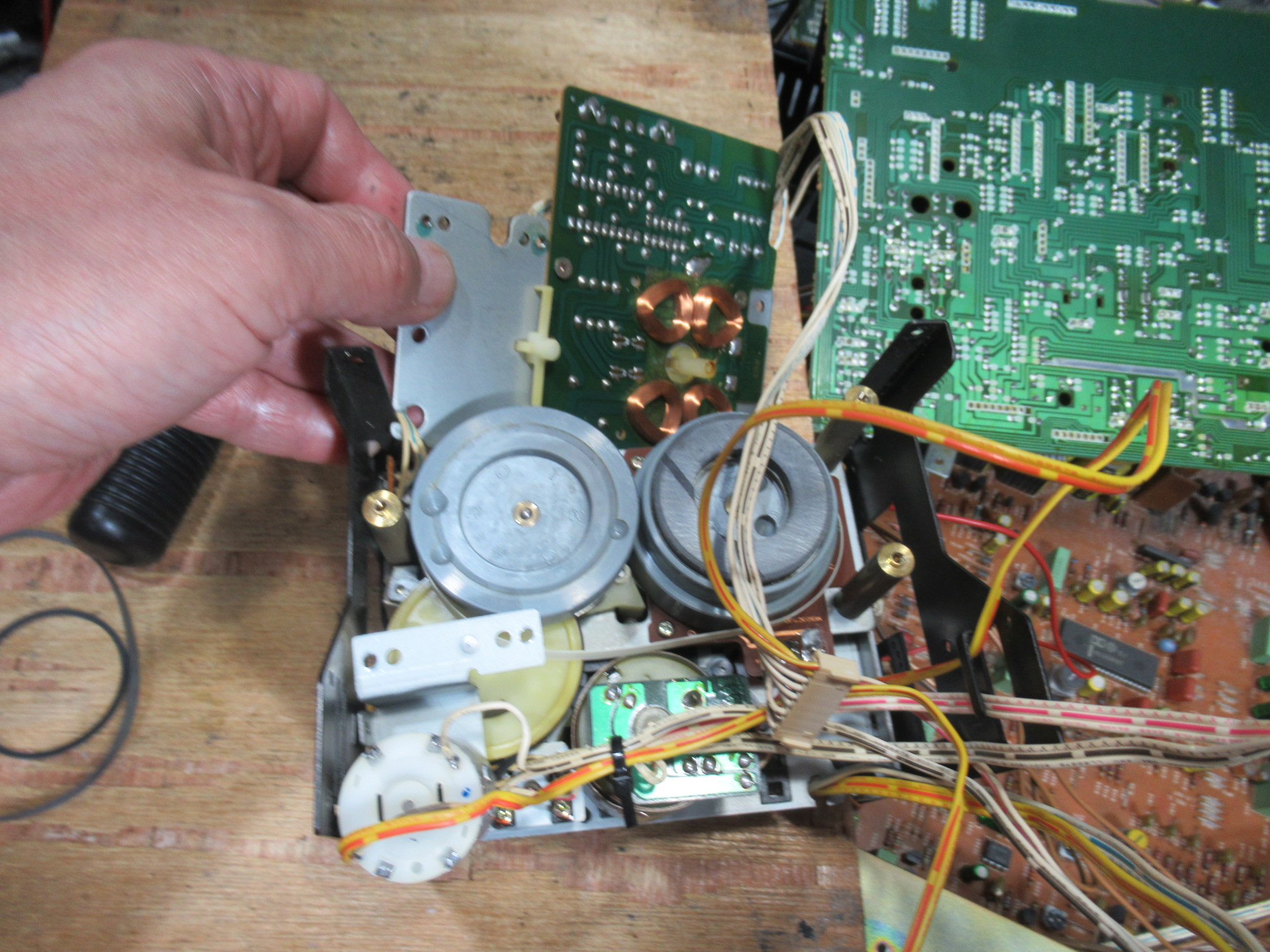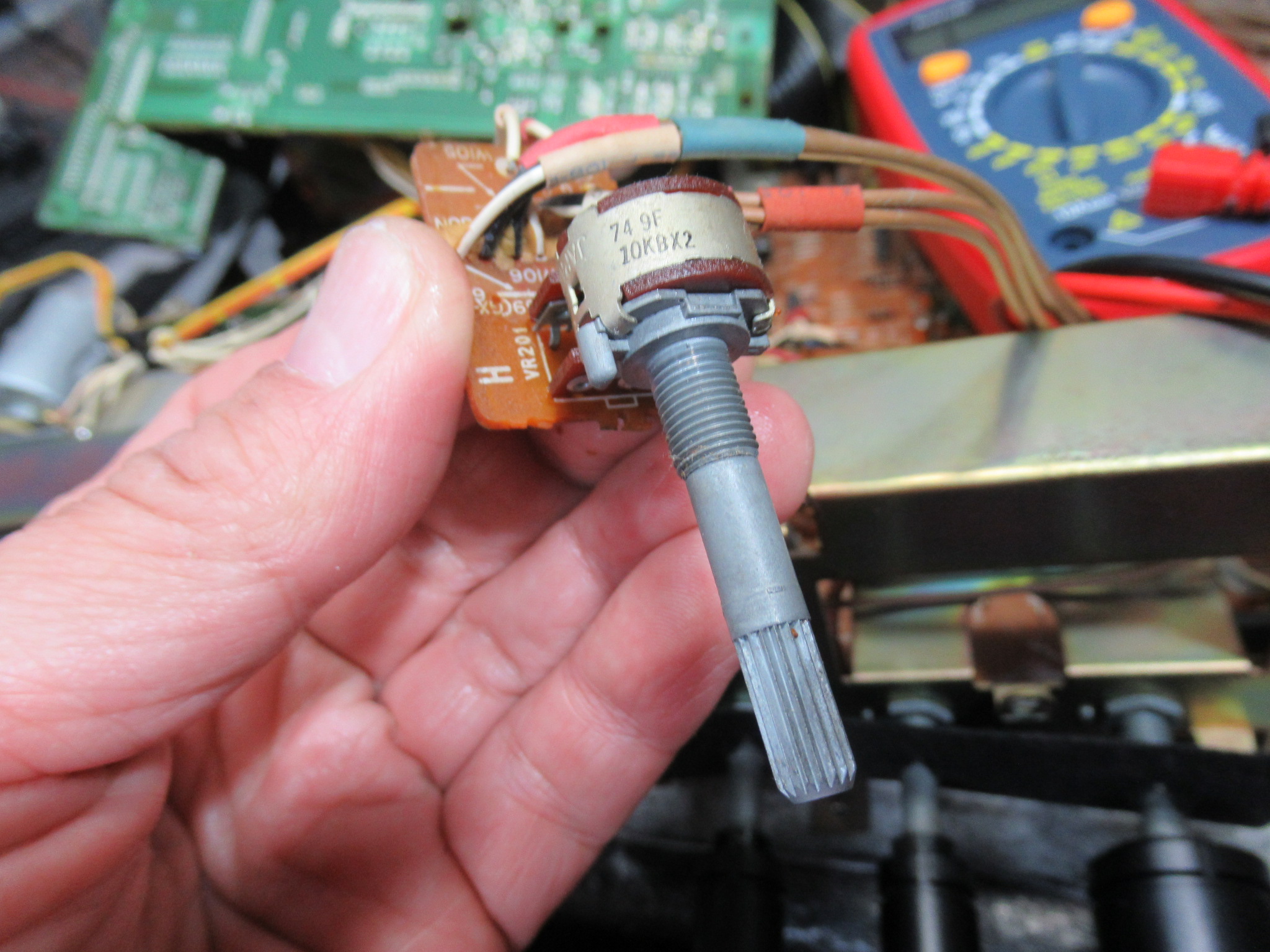 メカを元に戻して動作確認を行います。テープ走行とLINEOUT出力は良好ですが、ヘッドホン出力の右CHの音量調整ができません。