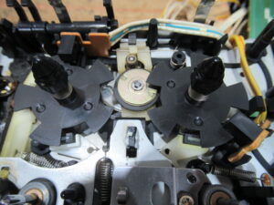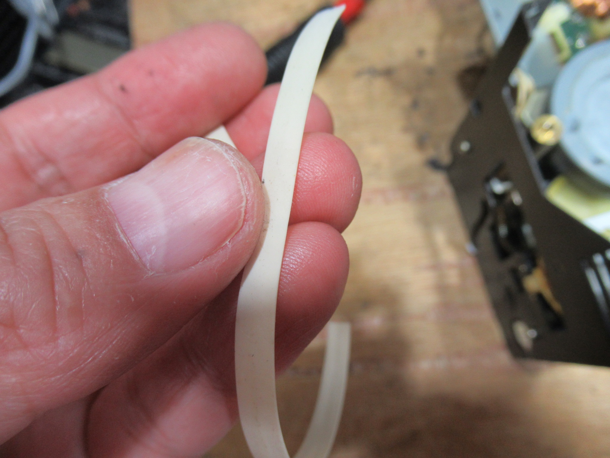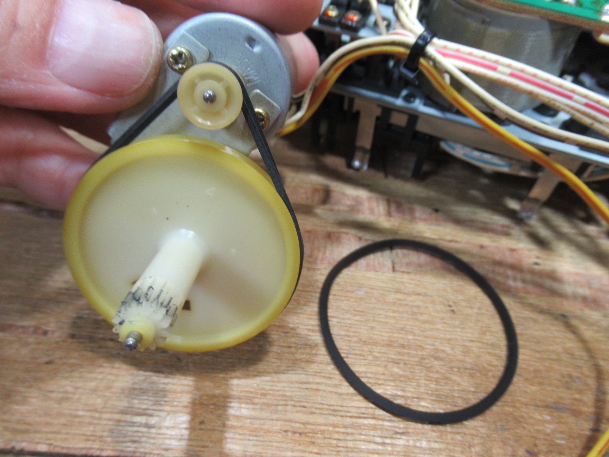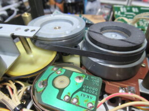 カバーを開けると、キャプスタンベルトが切れていることがわかりました。そのため、中途半端なシングルキャプスタン状態になって、音揺れが発生したと考えられます。