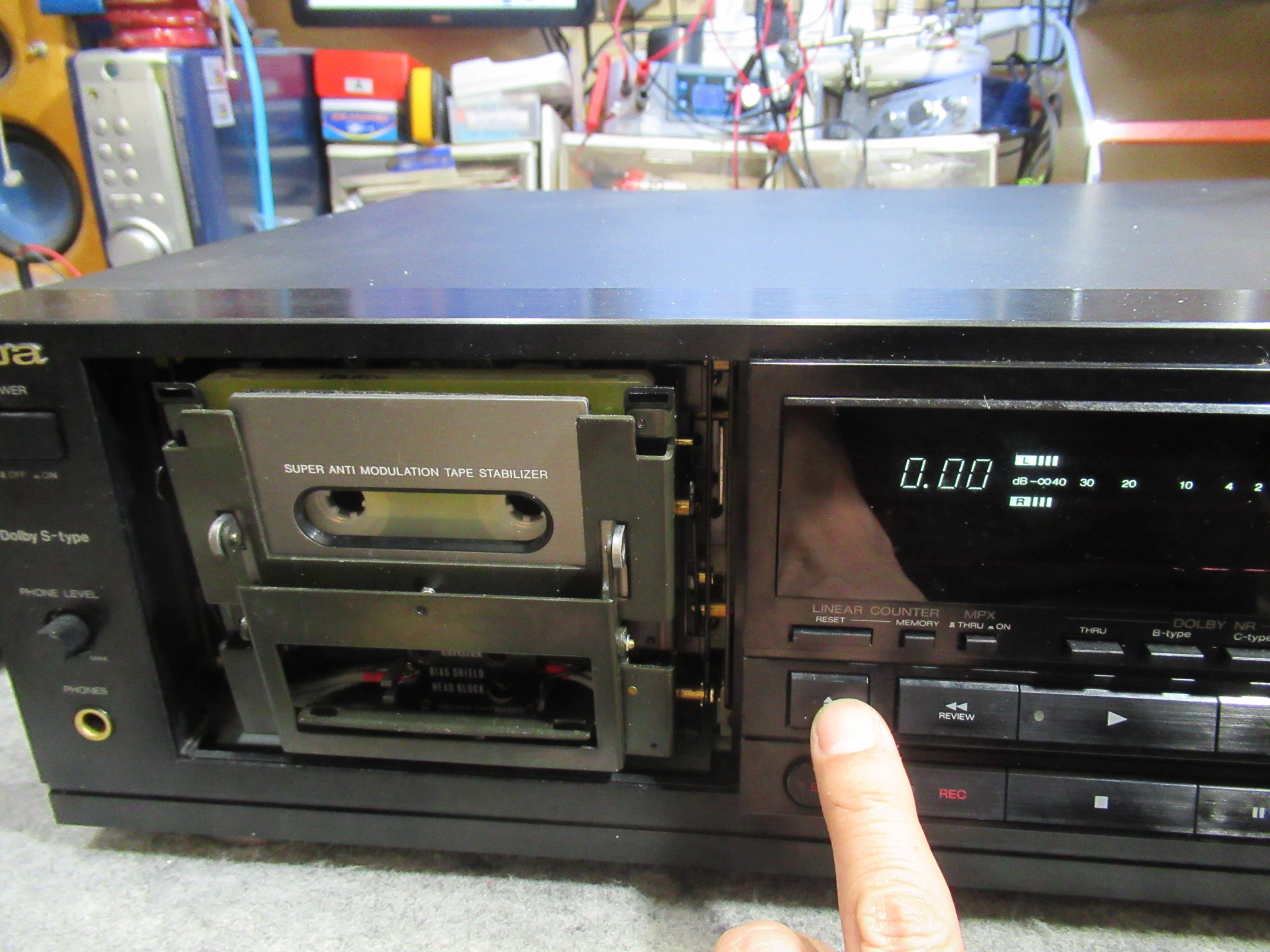 ヘッドとピンチローラーが下がりました。早速テープをセットしてみます。