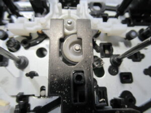 元通り組み立てます。カムギヤを指で回して、トレイが正常に動作することを確認します。