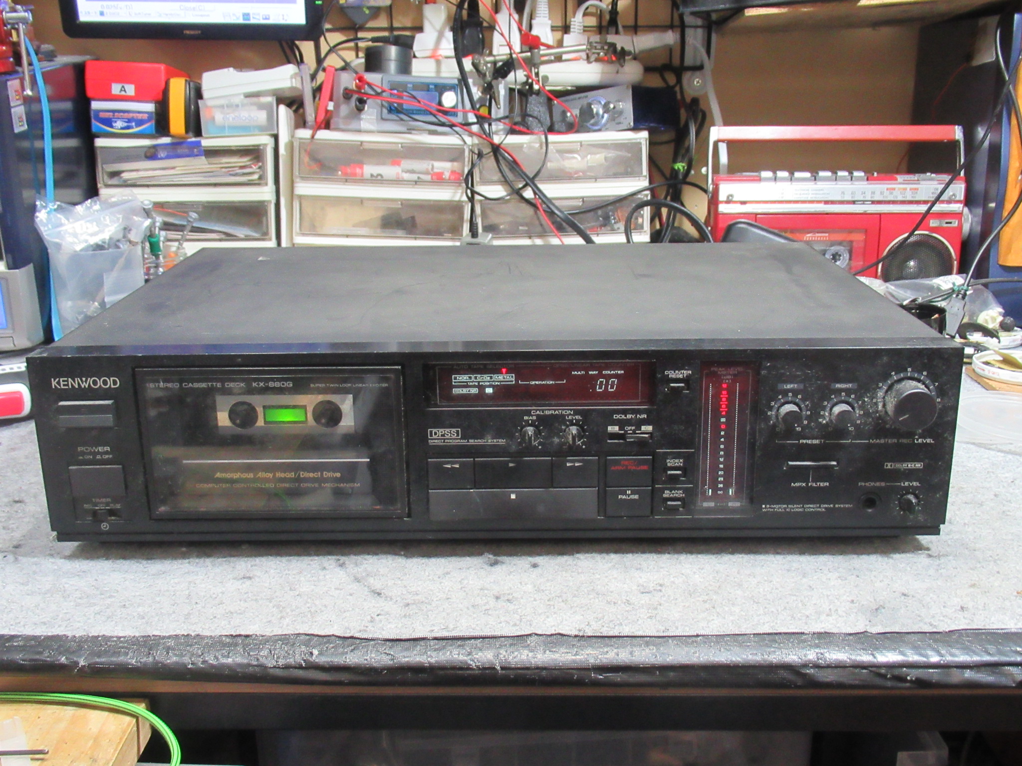 ケンウッド製2ヘッドシングルキャプスタンカセットデッキ、KX-880Gの修理依頼をいただきました。