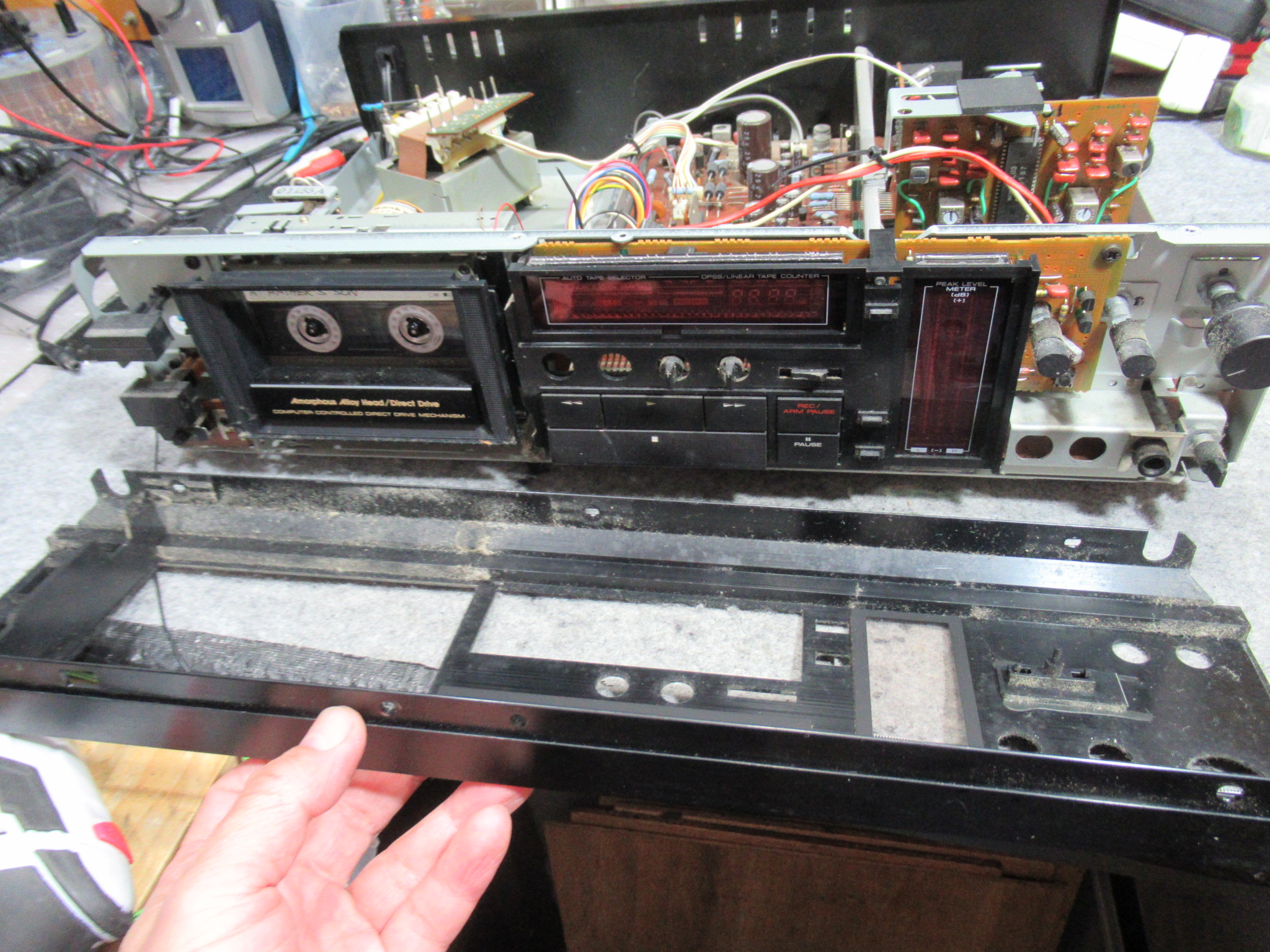 メカの整備に移ります。カセットホルダーと化粧パネルを取り外します。