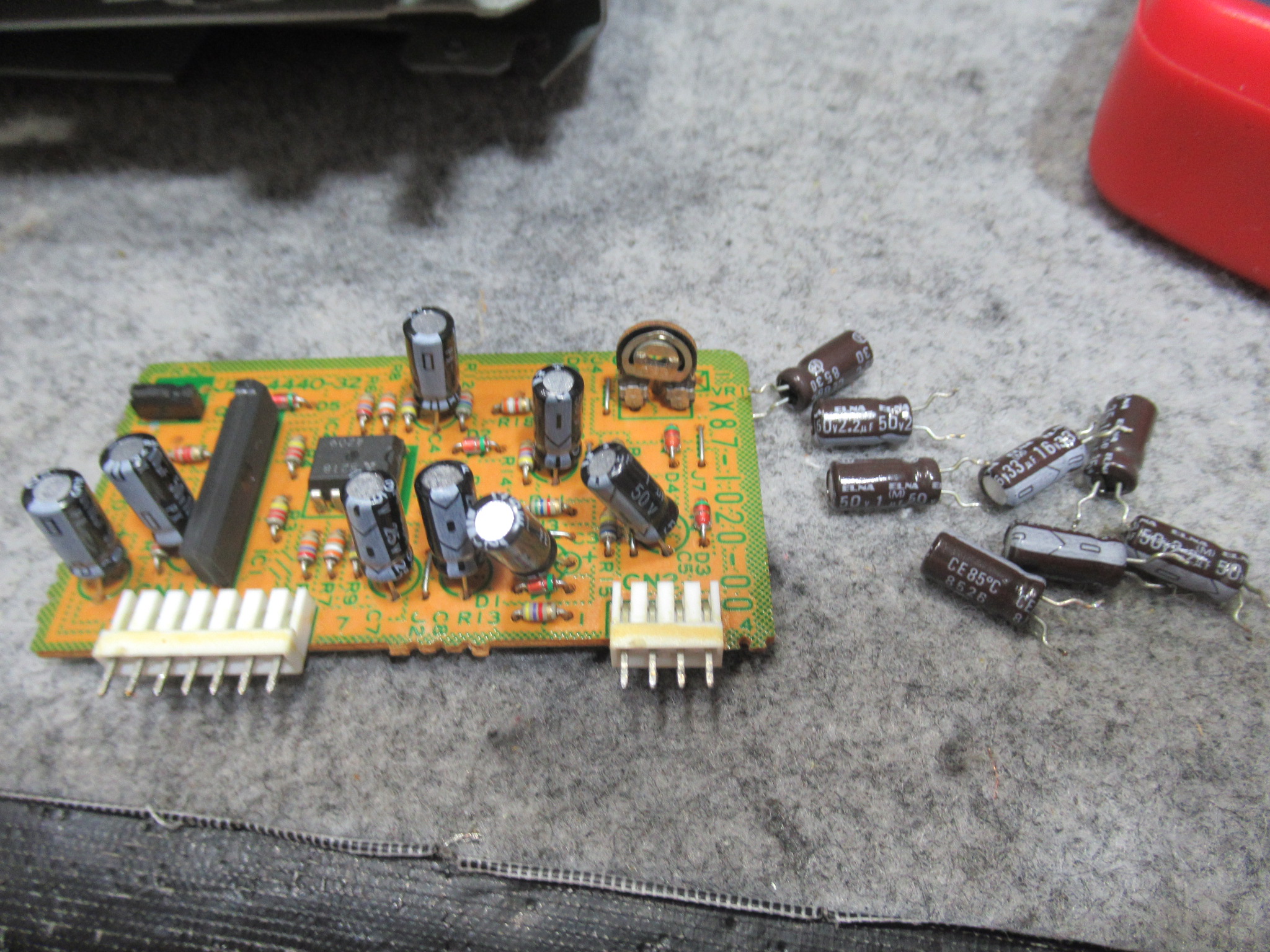 ドルビー基板(先ほど交換したもの以外)の電解コンデンサーを交換します。