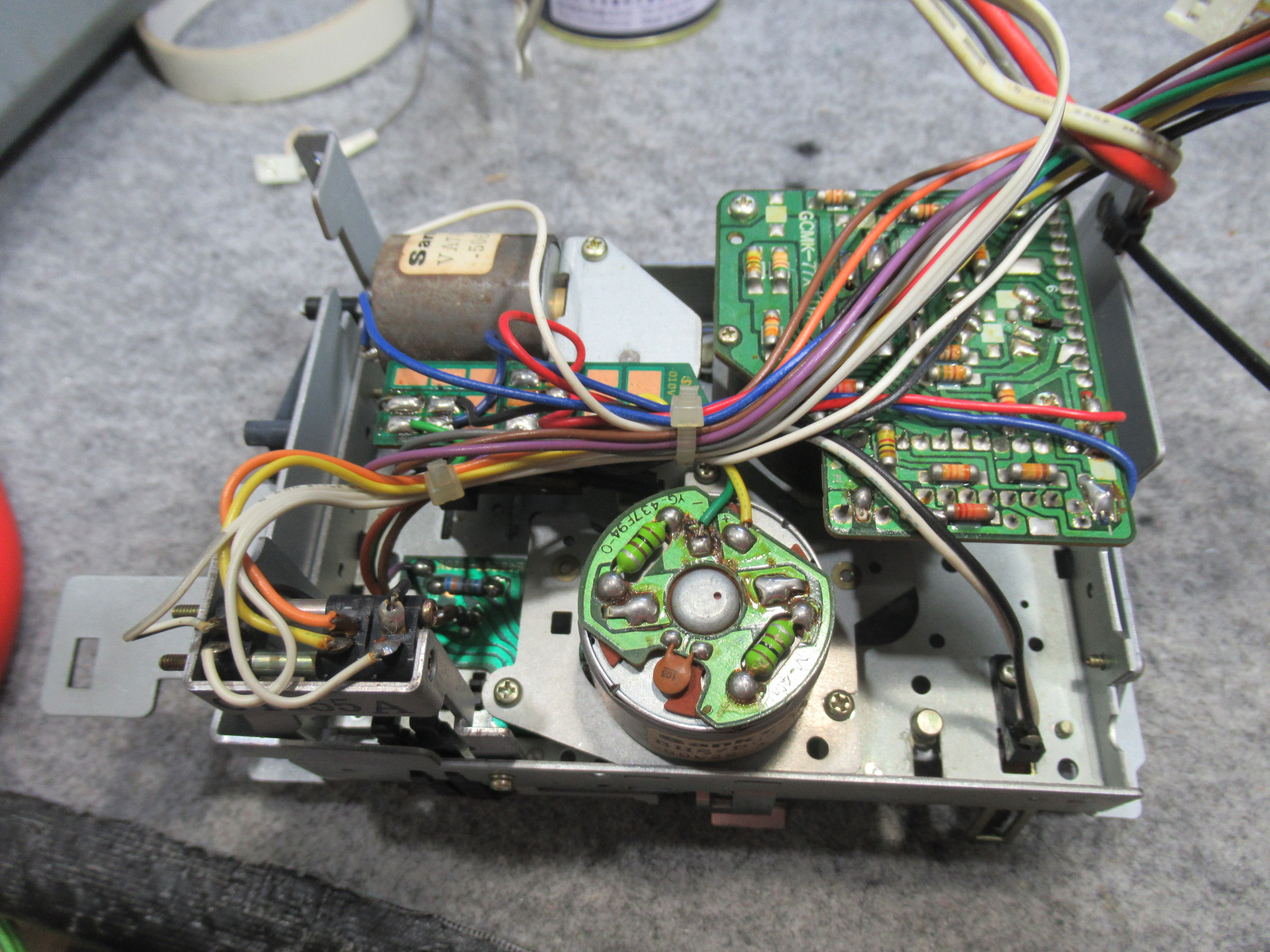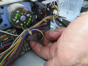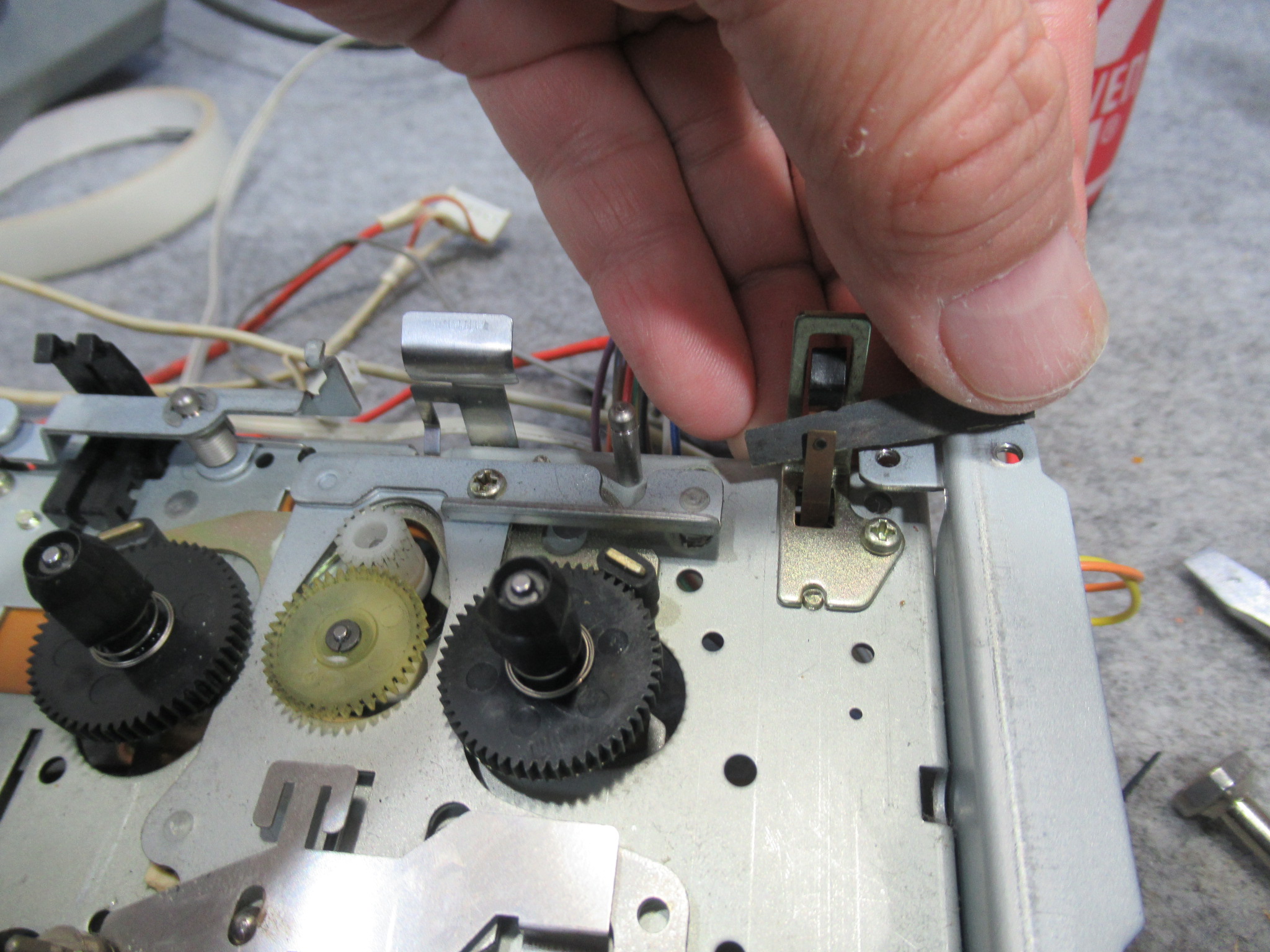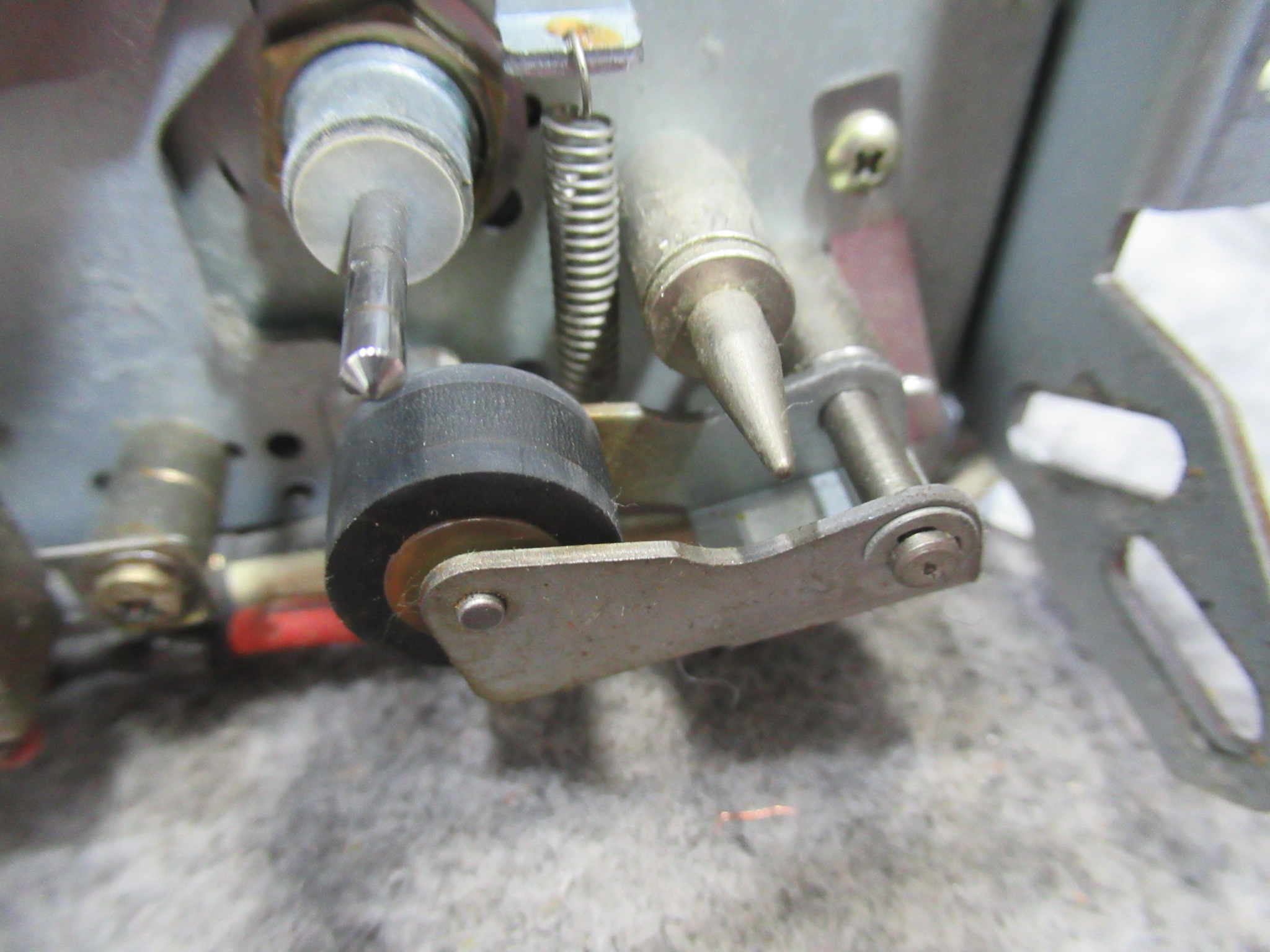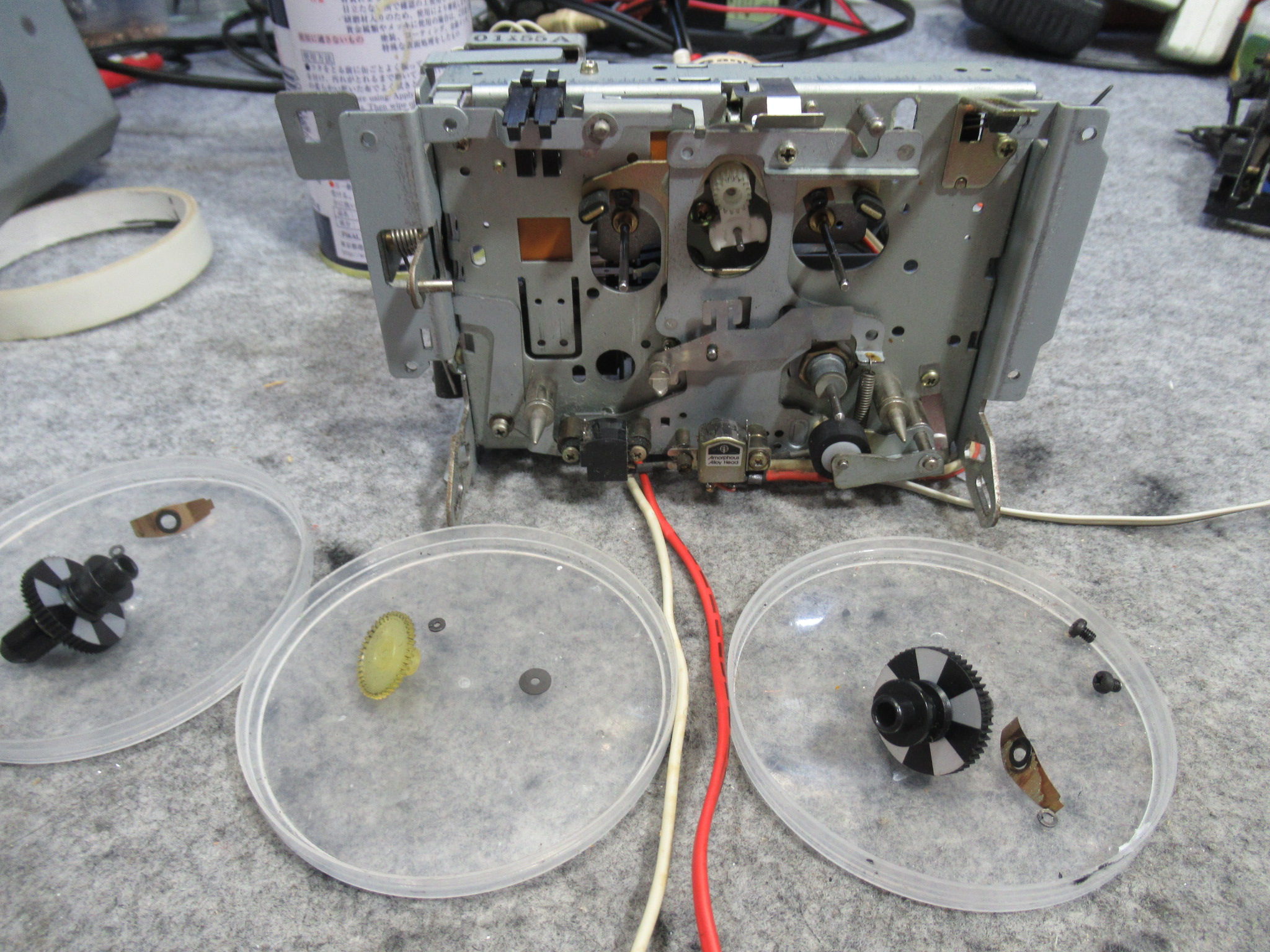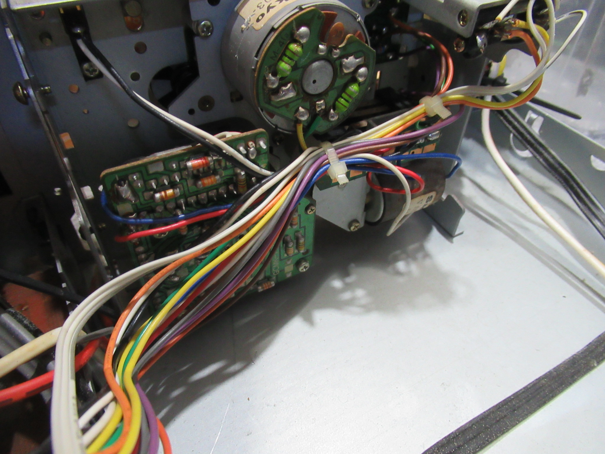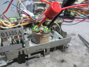 動作確認中に、新たな不具合が生じました。ヘッドが上がったままになり、キャプスタンは回転するものの。巻き取り側のリールが回転しないため、テープがどんどんと弛んでいきます。