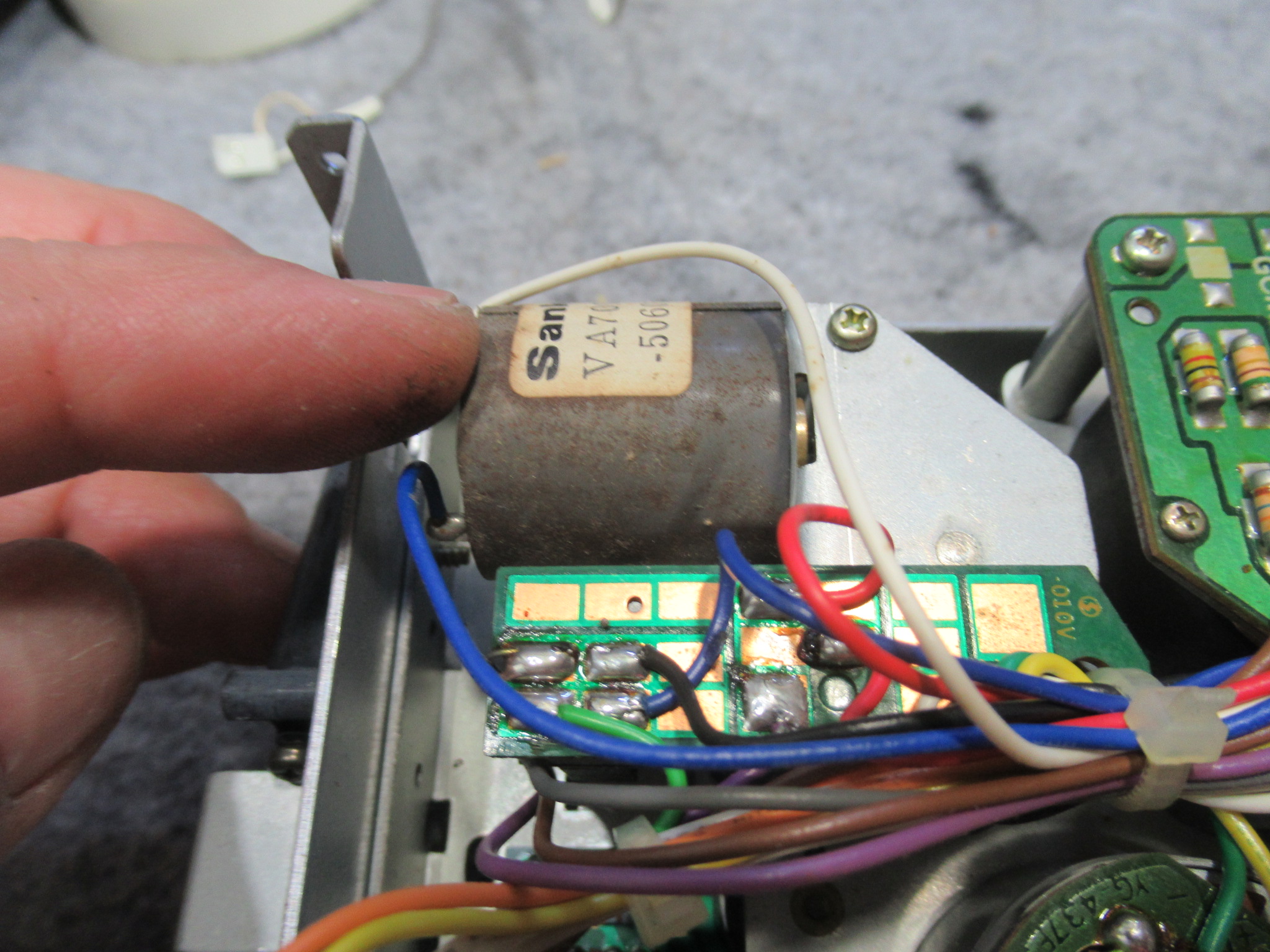 Q10(2SA933)のトランジスタが故障していましたので、代替品の2SC733と交換します。