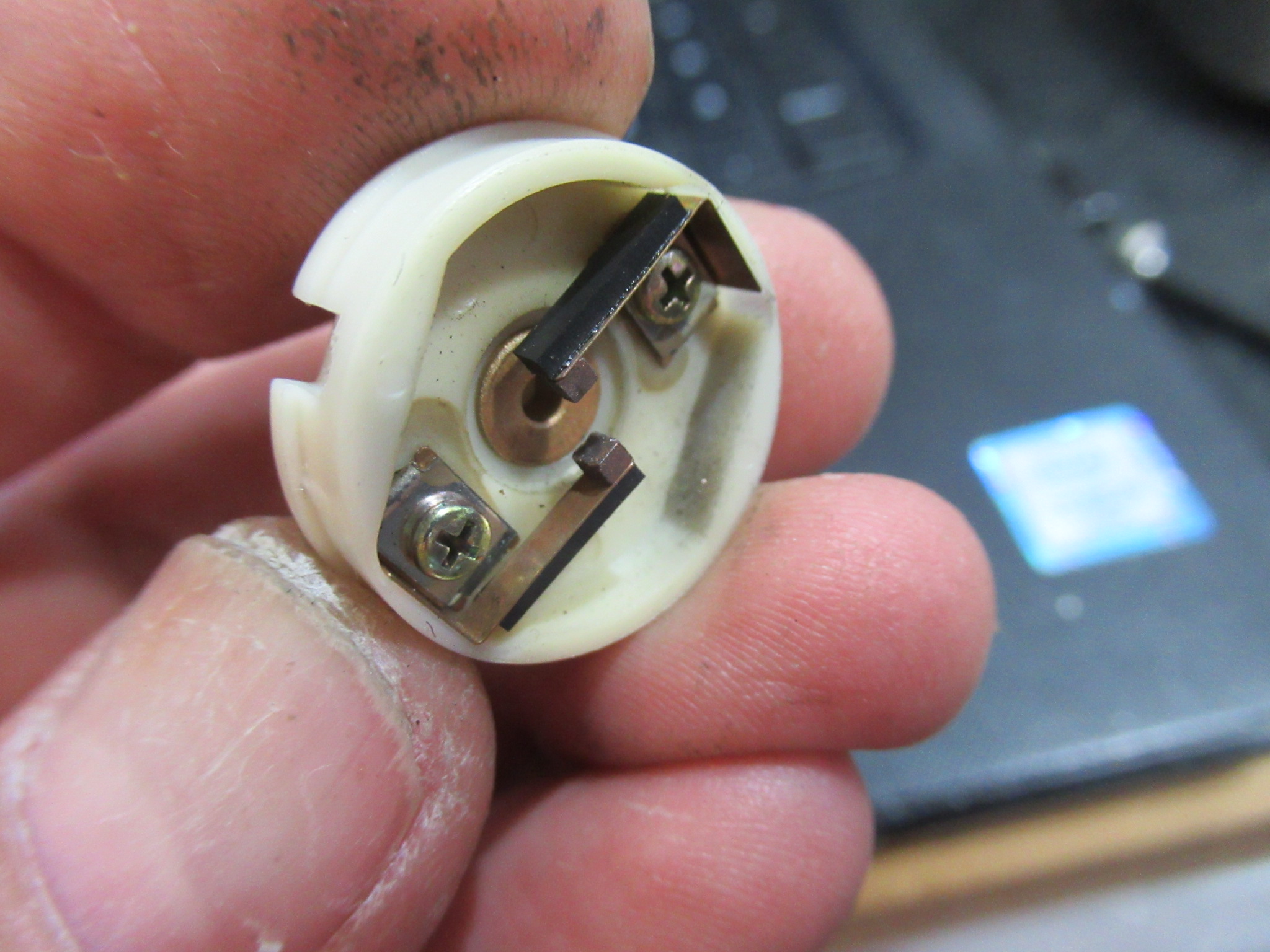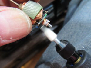 モーターでON-OFFするスイッチ接点を磨きます。