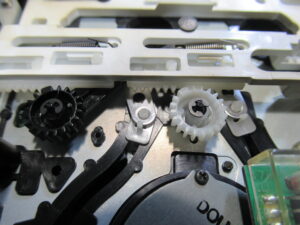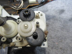 白黒ギヤを固定している留め具が、今にも外れそうです。