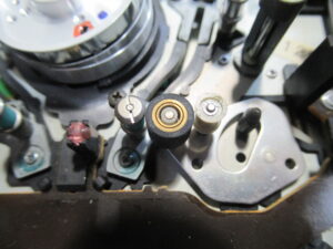 写真中央のカートリッジ検出スイッチに接点復活剤を処置します。