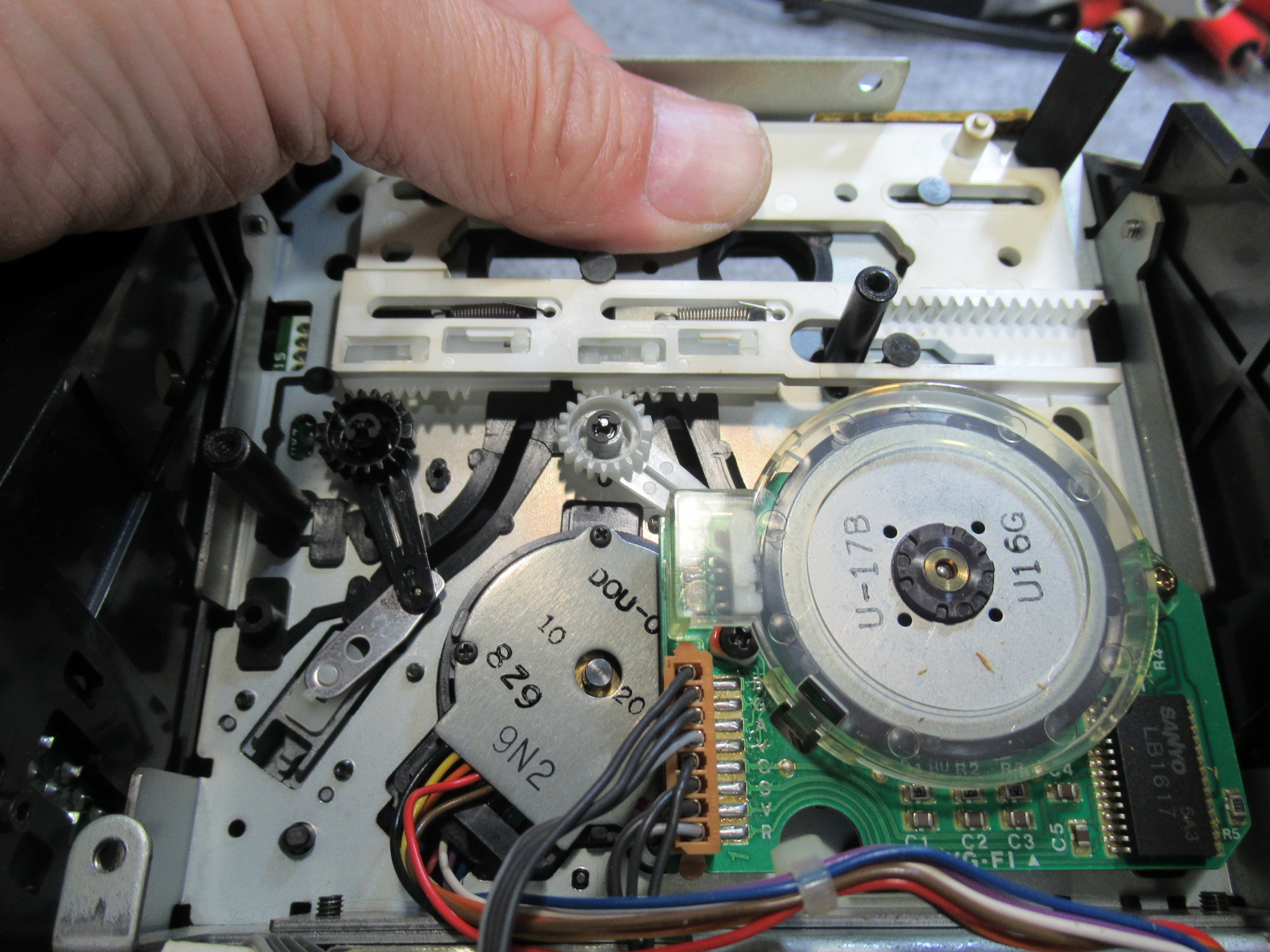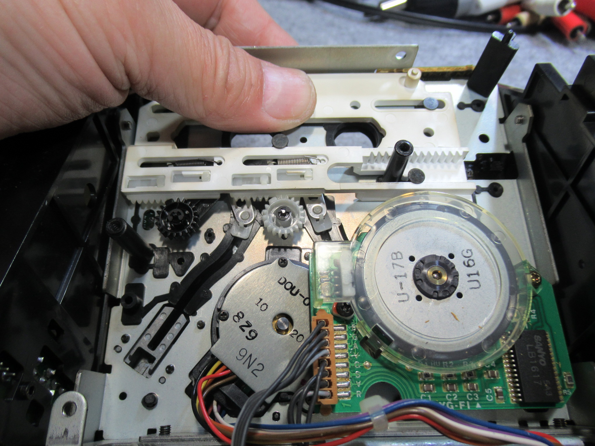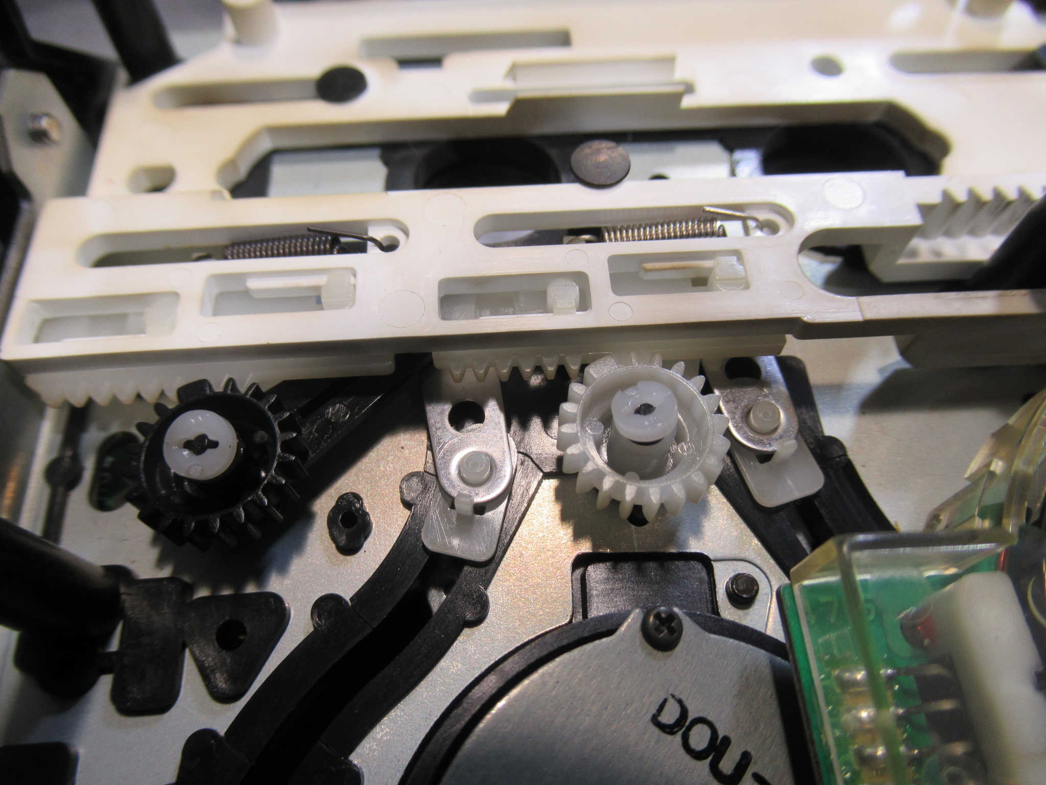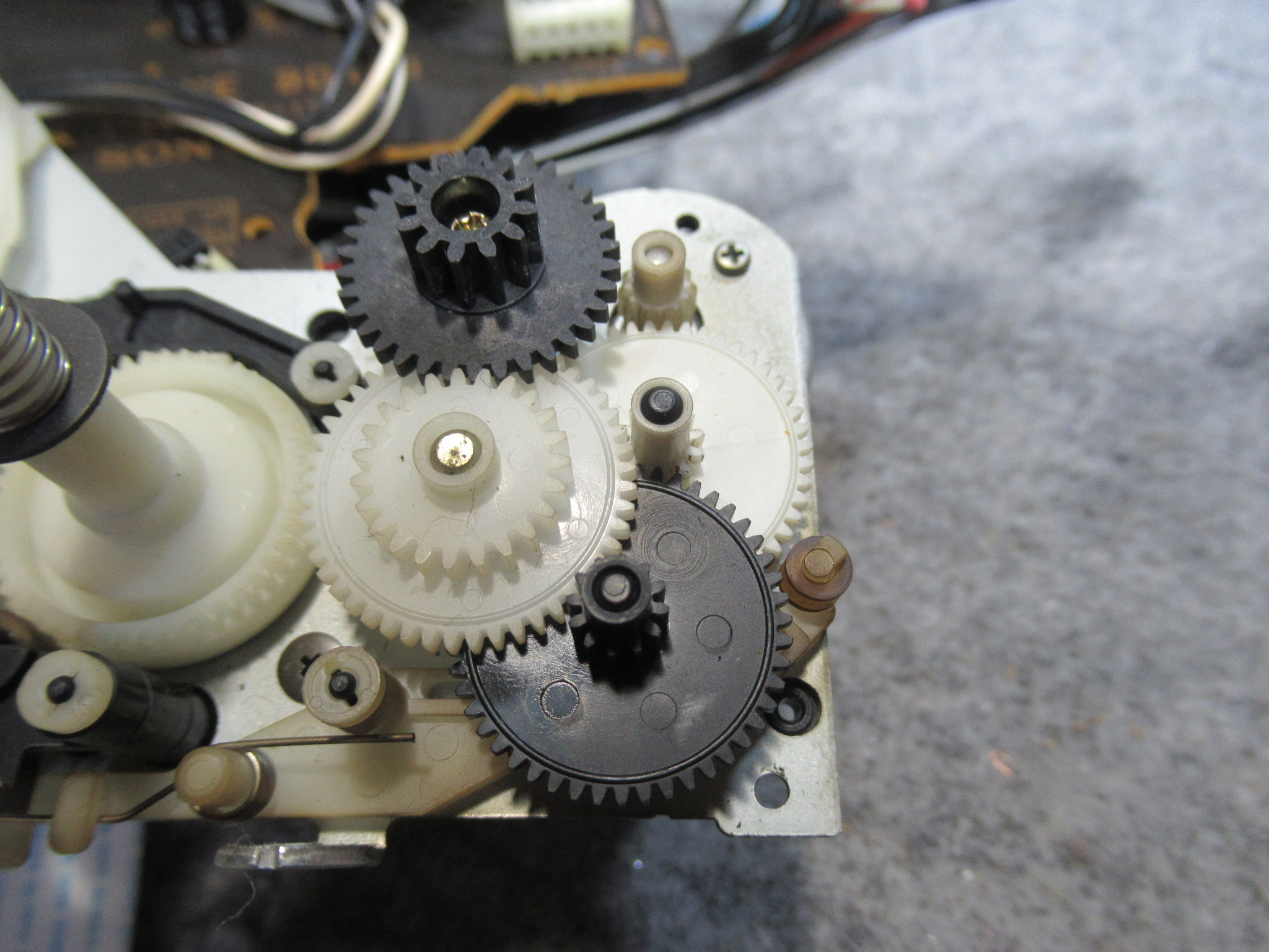 白黒ギヤを固定している留め具が、今にも外れそうです。