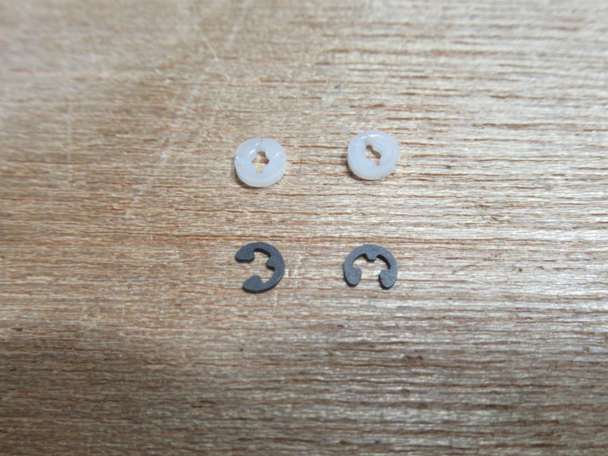 プラスチックが劣化して割れていましたので、鋼製のEリングと交換します。