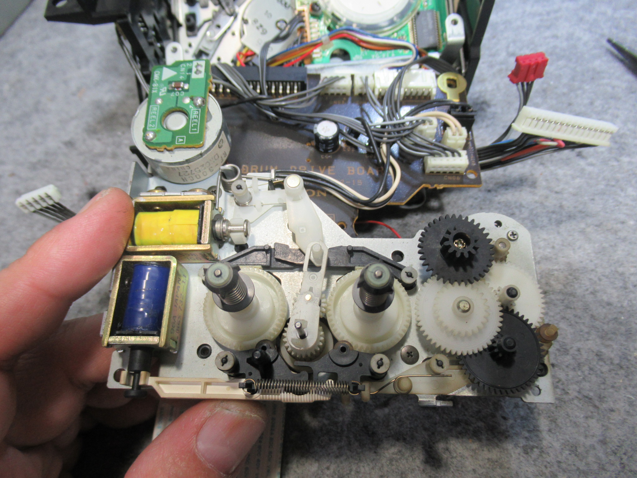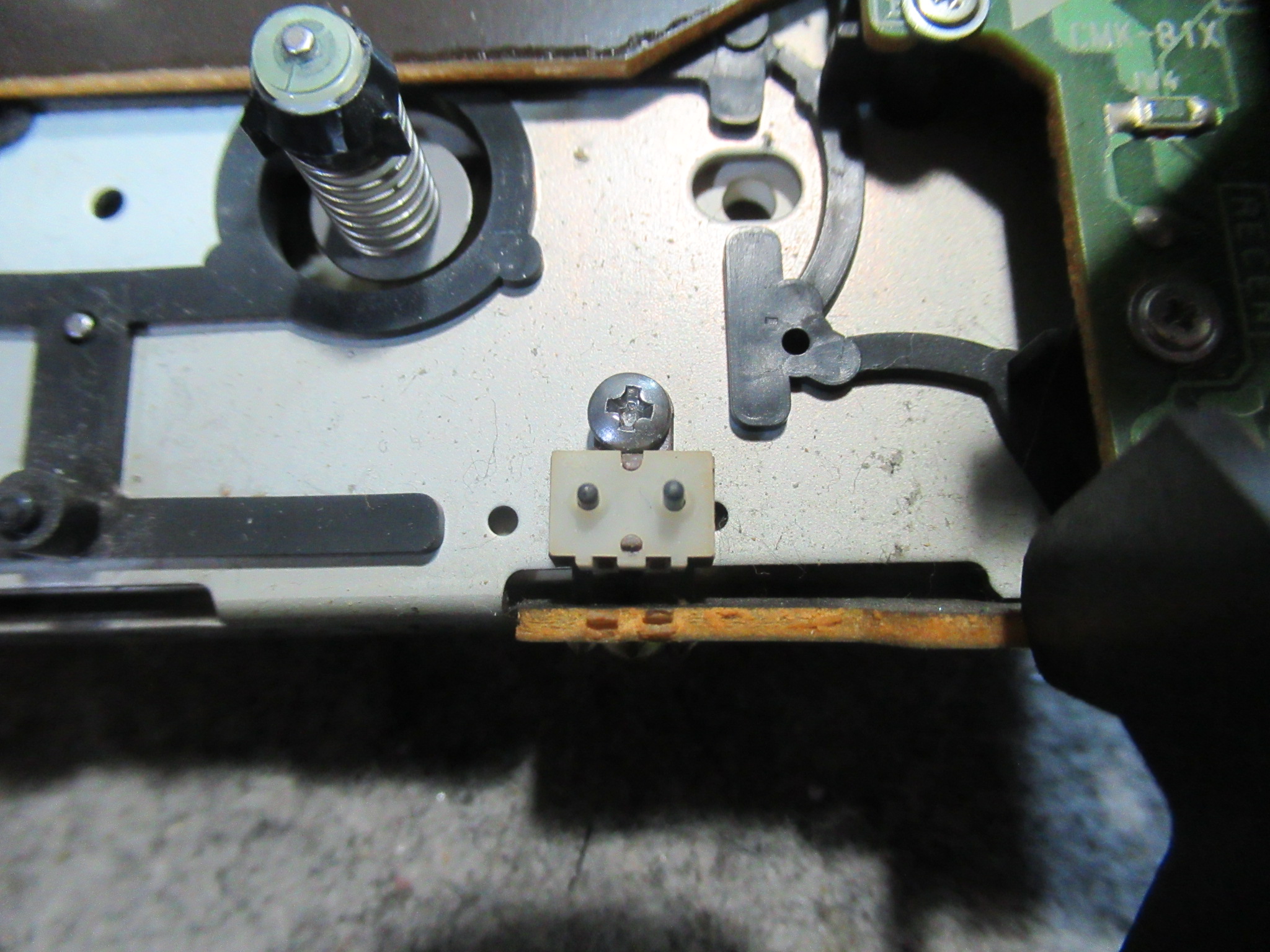 写真中央のカートリッジ検出スイッチに接点復活剤を処置します。