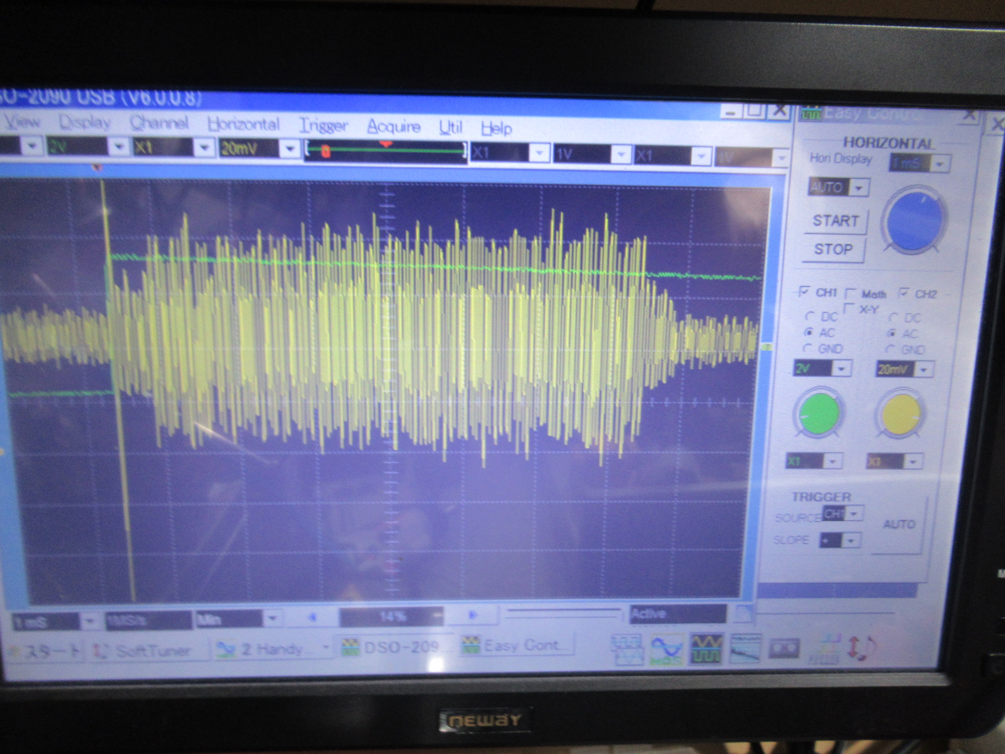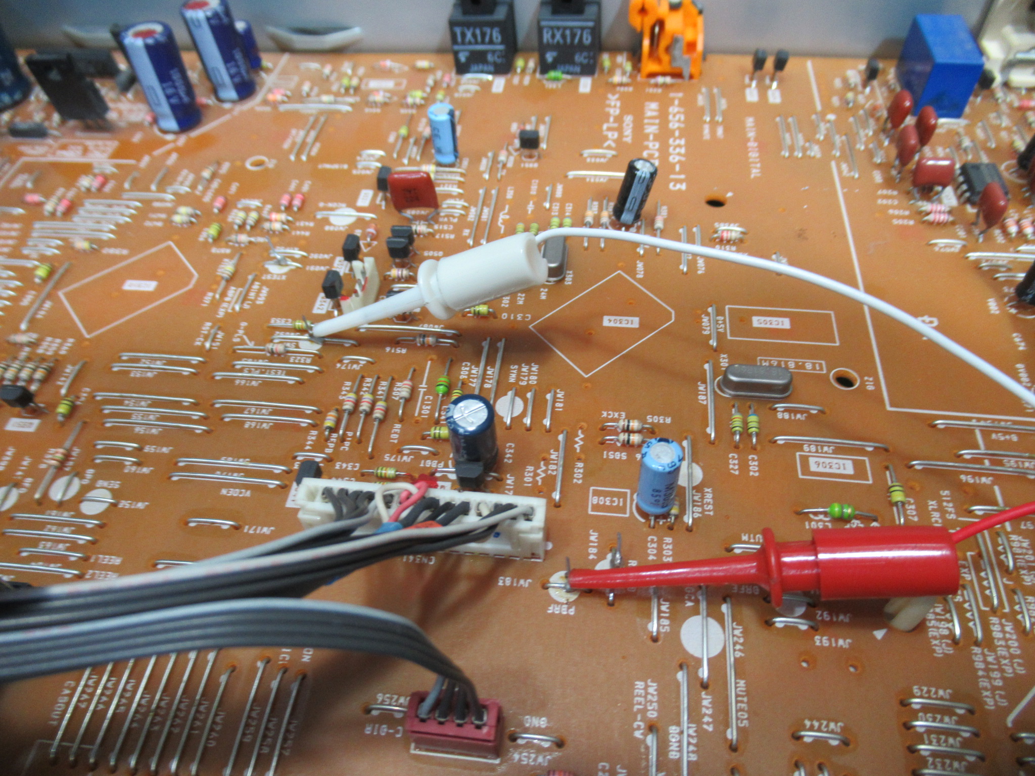 ヘッドの信号を確認するため、オシロスコープを接続します。すでに接続端子が加工されていましたので、過去に誰かがテープパス調整を行ったようです。