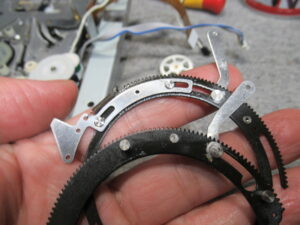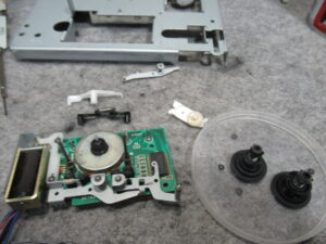リールユニットです。ブレーキパッドの交換が必要な状態です。このままでは早送り巻き戻し後にテープがたるんでしまいます。