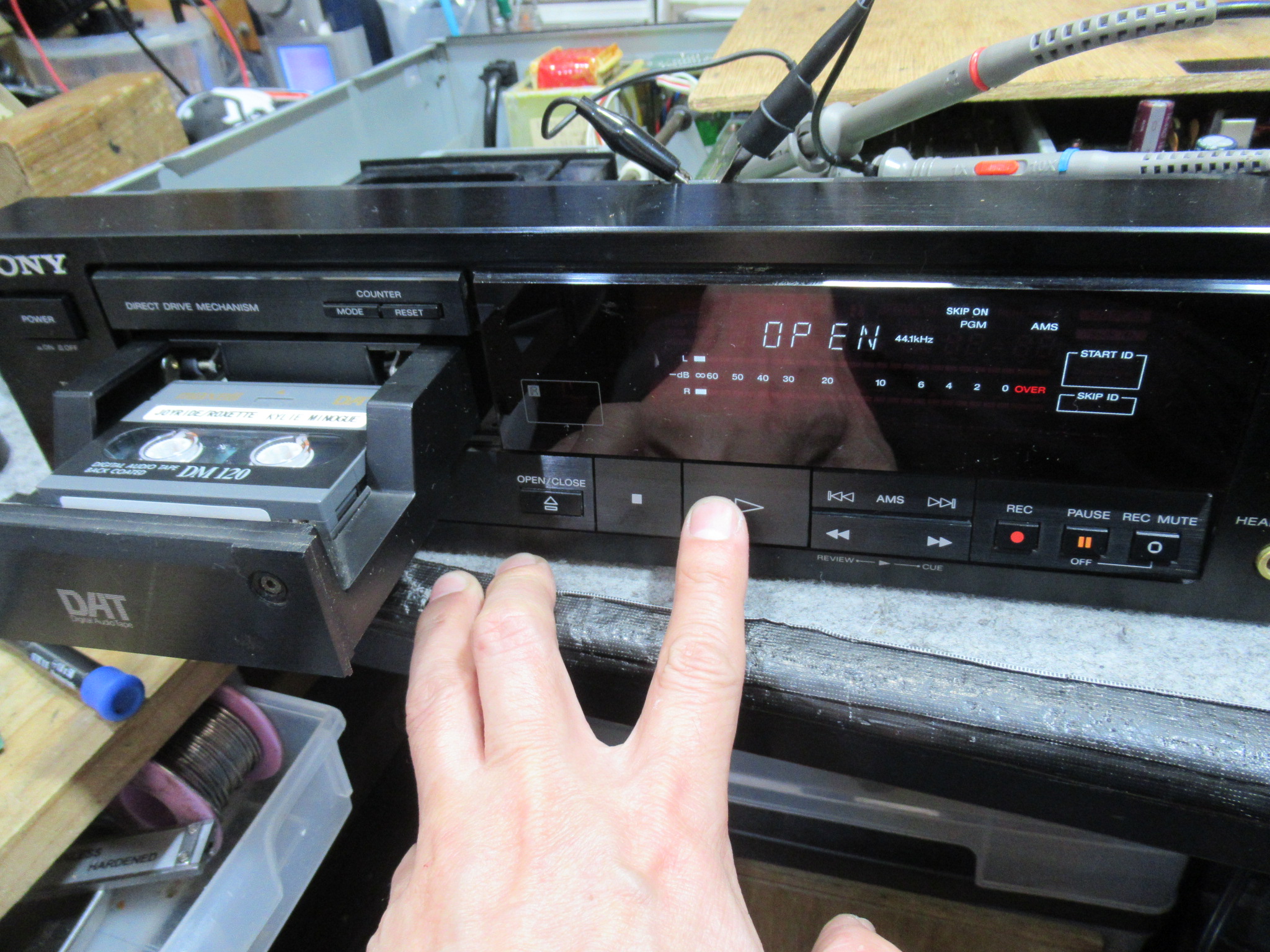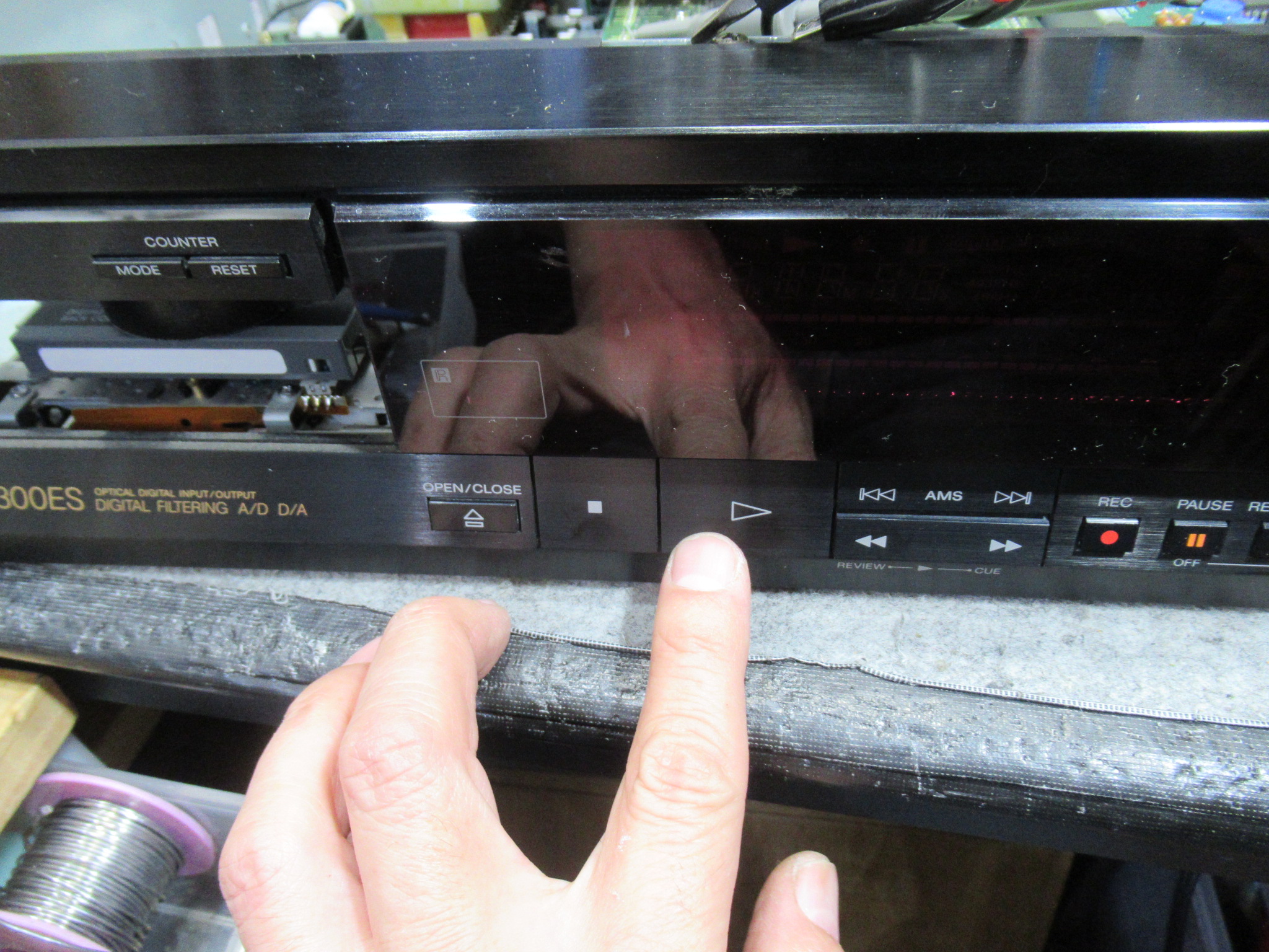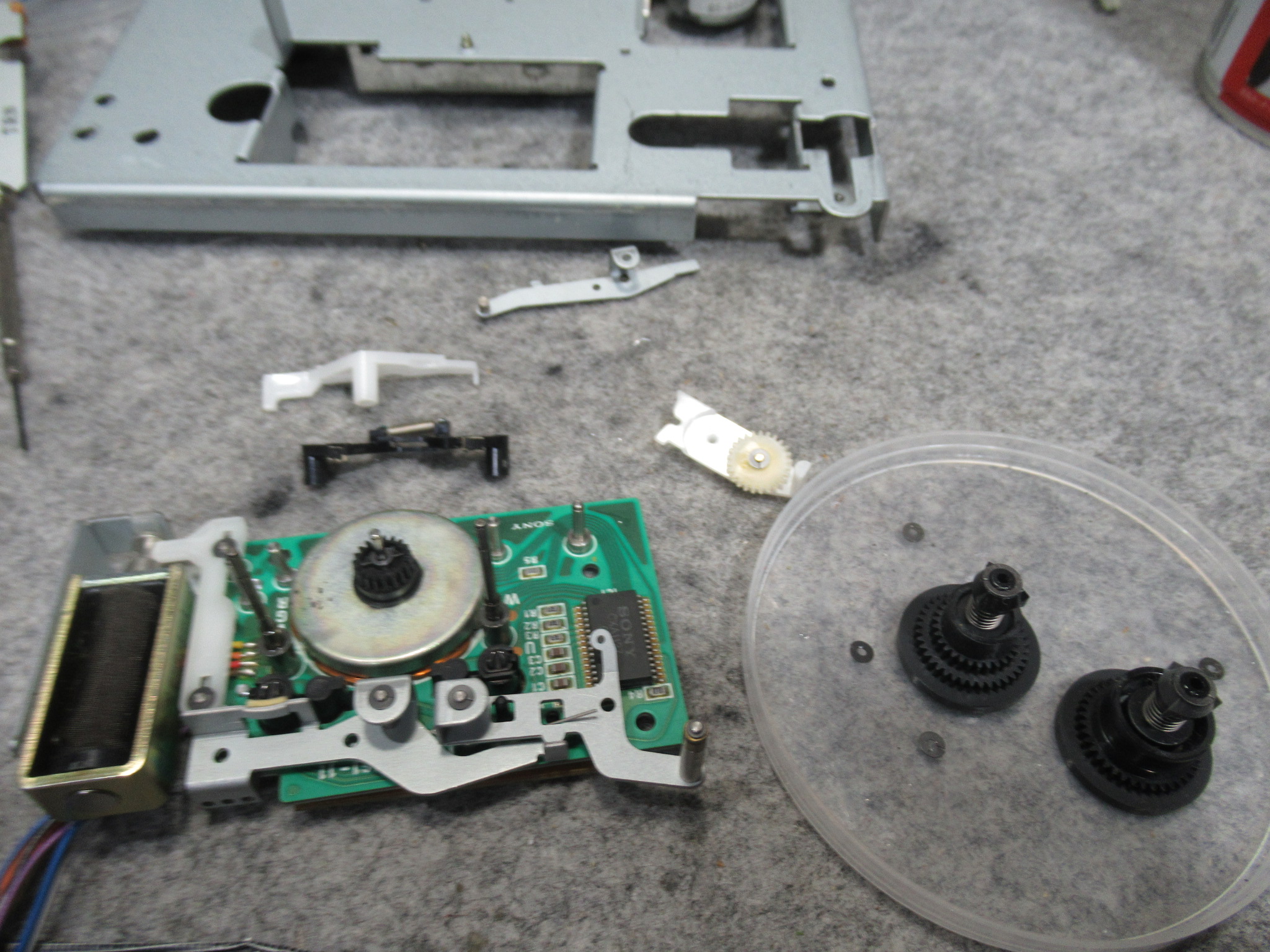 ここで問題が発生しました。最初は気になりませんでしたが、ローディングの途中で一瞬電源が落ちて(厳密には電圧低下によるブラックアウトのようです)停止してしまいます。すぐに元に戻りますので再度操作ボタンを押すことによって動き出しますが、何度やってもテープガイドが少し上がり始めたところで不具合が発生します。また、イジェクト時も、動き出したテープガイドが同じ場所に移動した際に不具合が発生します。
