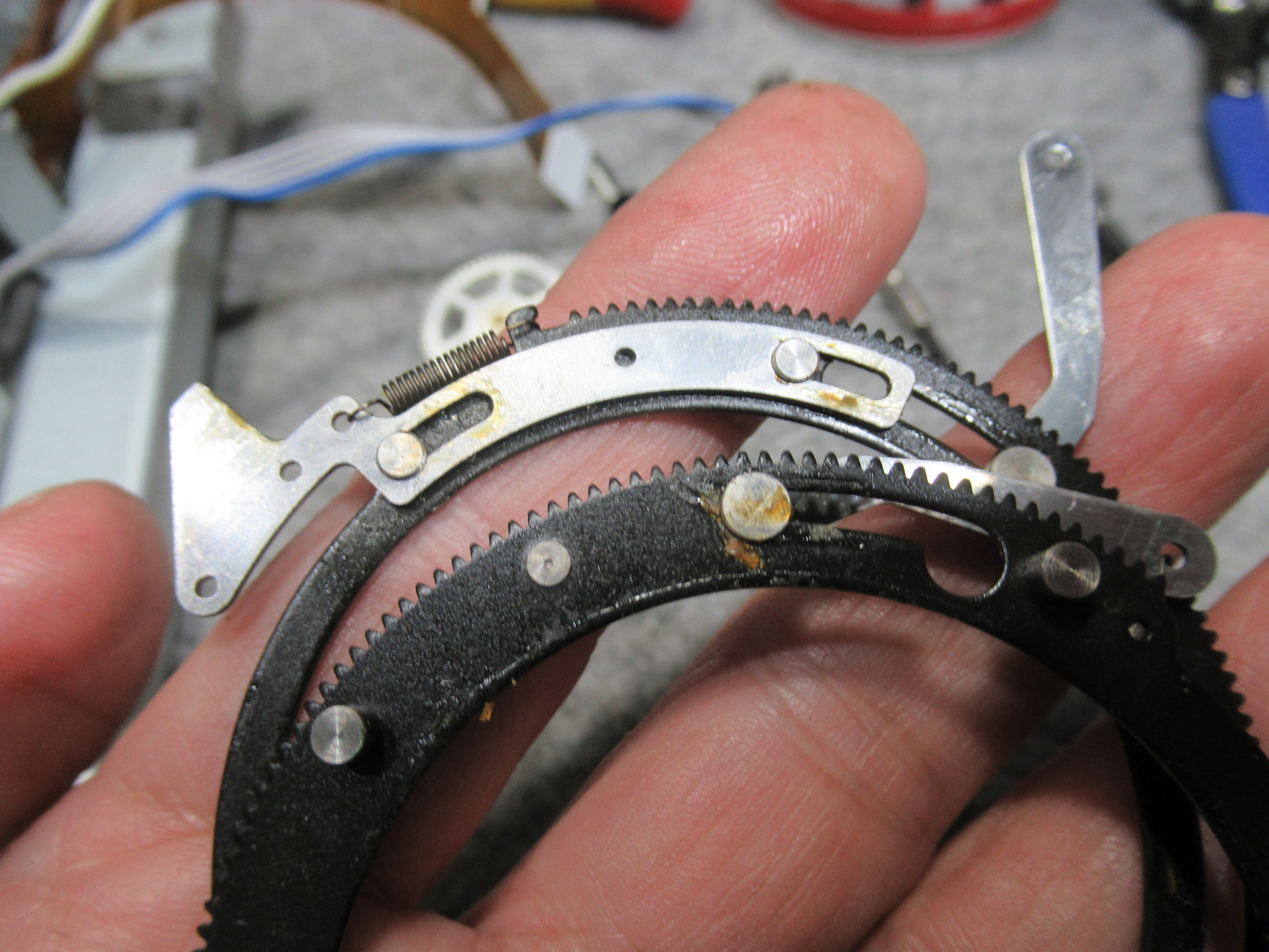 リールユニットです。ブレーキパッドの交換が必要な状態です。このままでは早送り巻き戻し後にテープがたるんでしまいます。