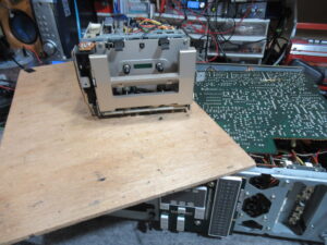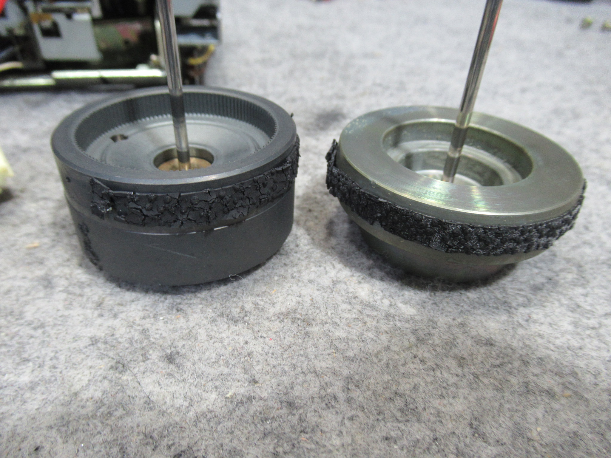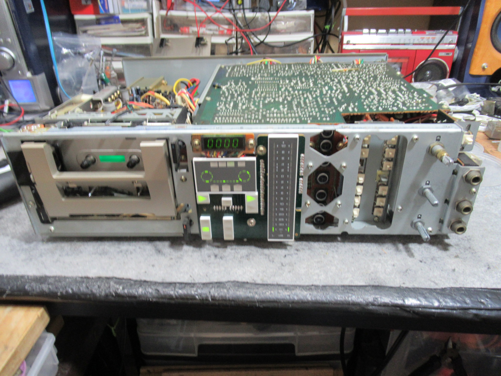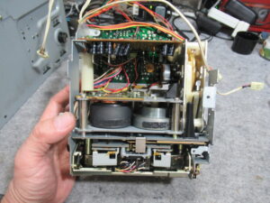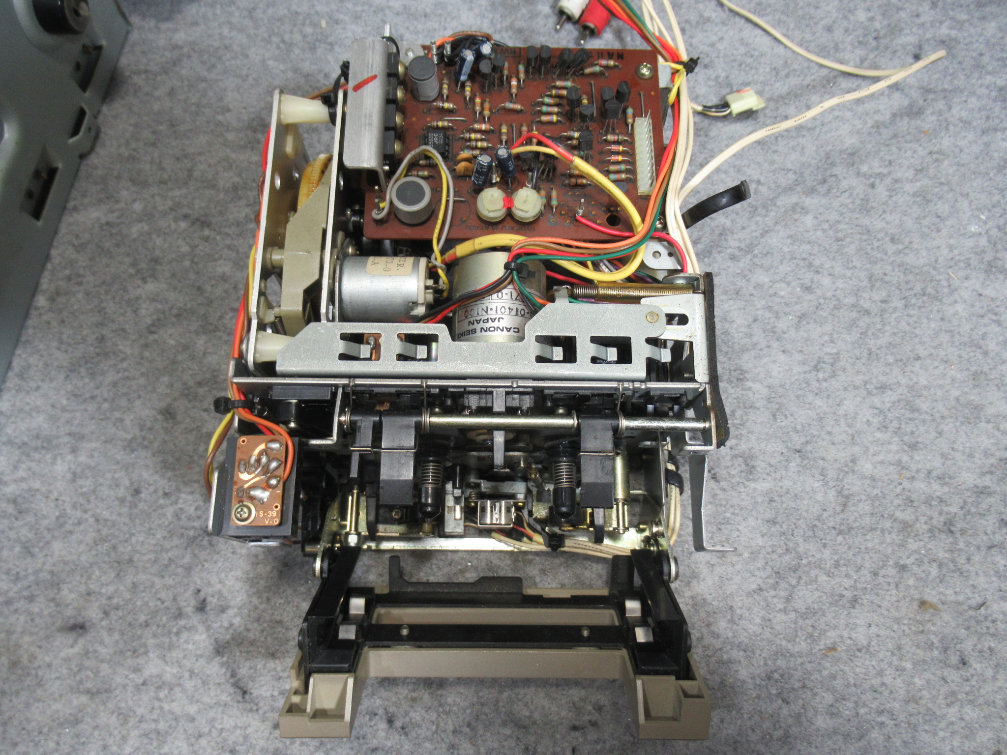 久しぶりにこの機種を扱うため、大事なことを忘れていました。トレイが閉まった後、テープのたるみを取るため、リールにブレーキが掛かった状態で左側のリールが回転します。そのときに「キー」という嫌な音が鳴ります。