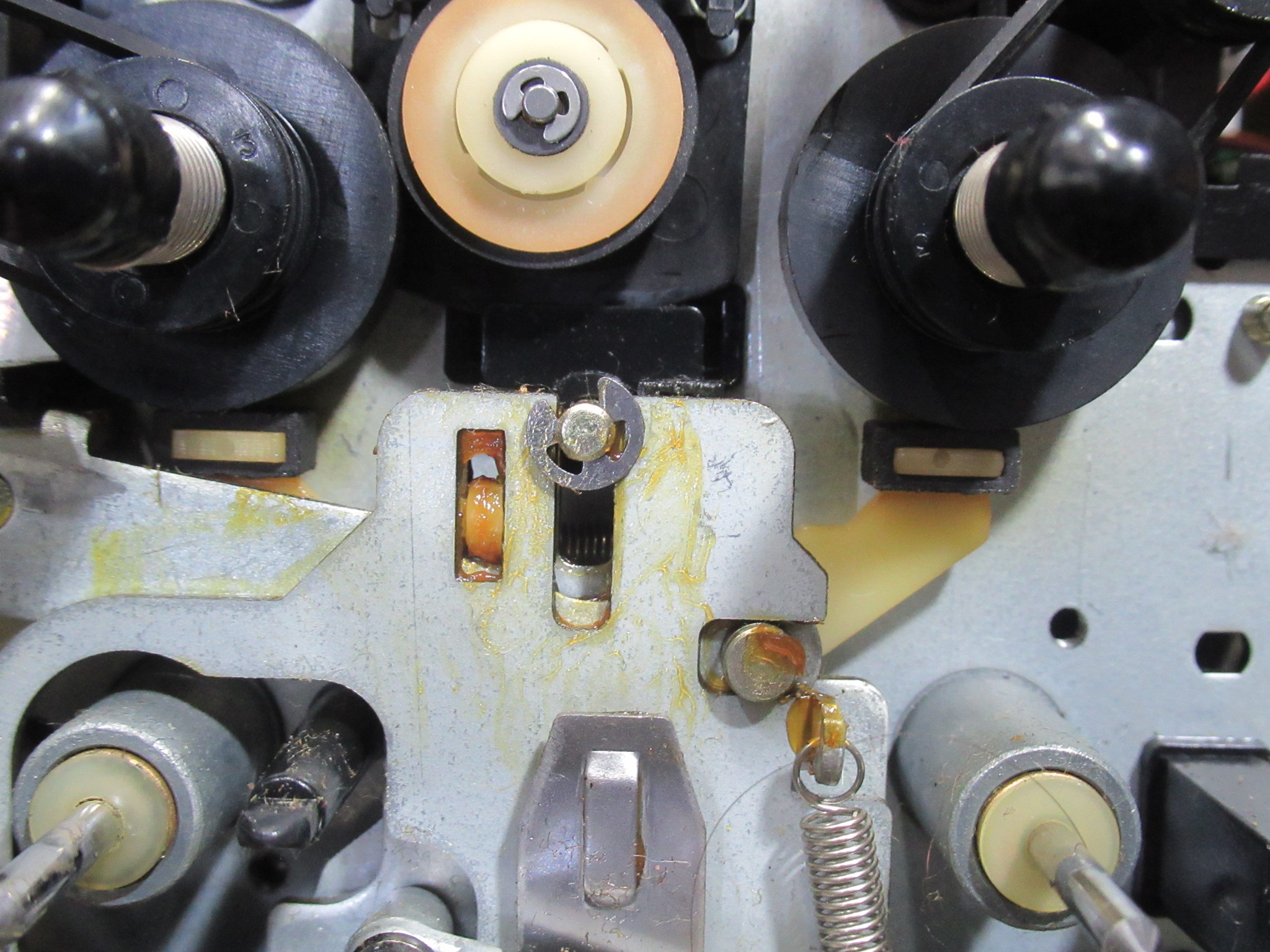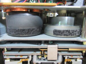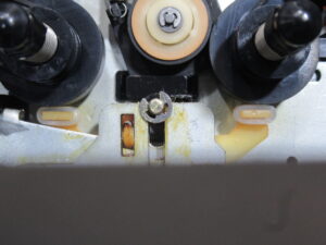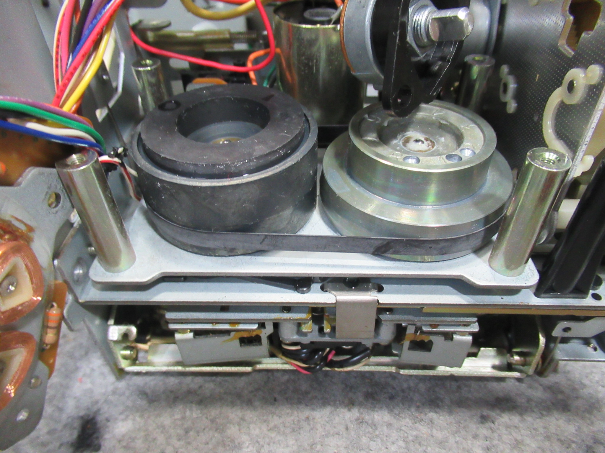メカの底面です。キャプスタンベルトが一度加水分解で溶けて、現状は乾きかけています。