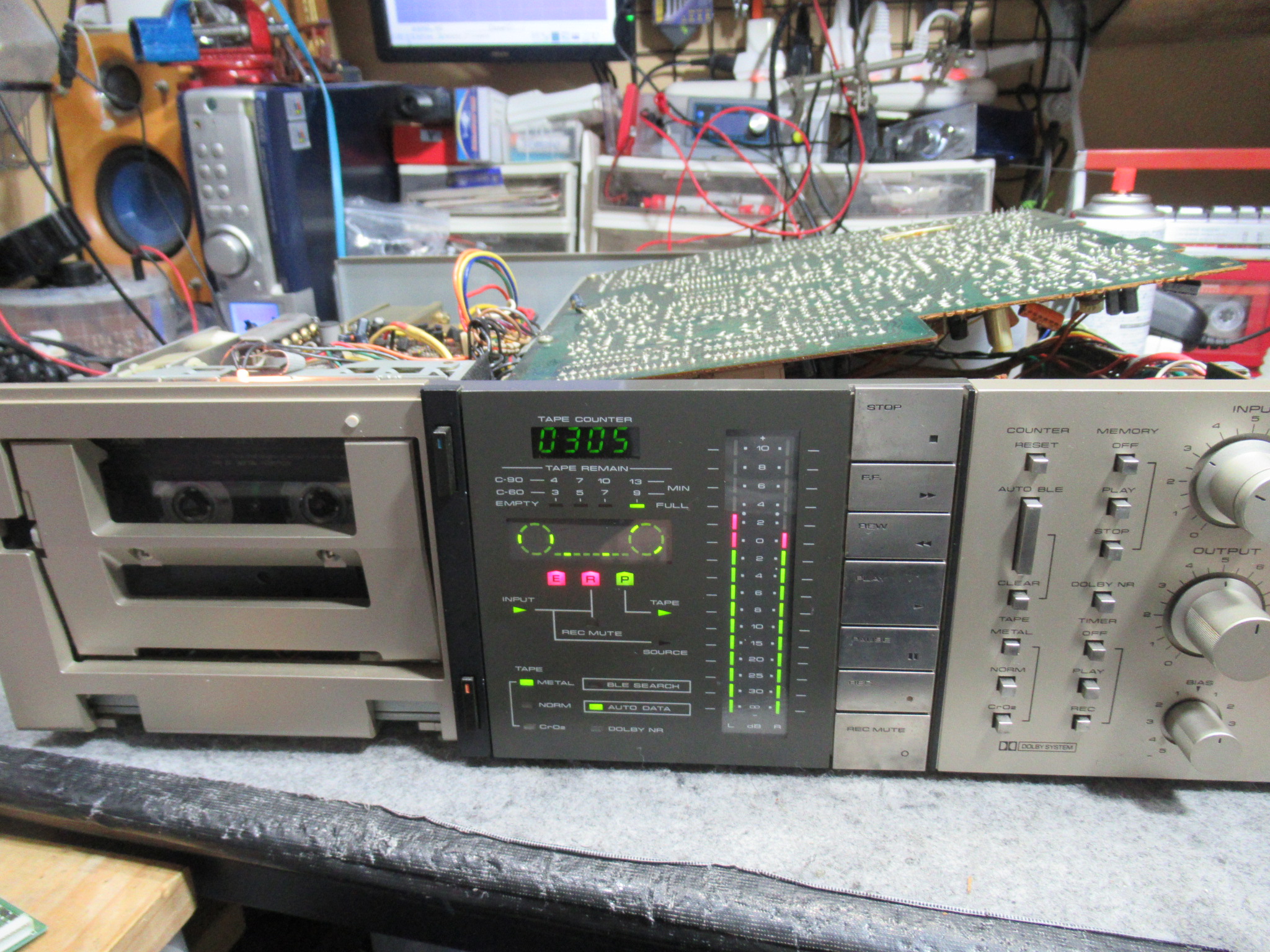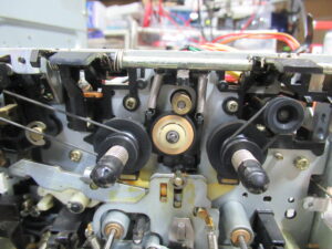 今日は朝からジャンクCT-970の修理を行いました。 定番の溶けたキャプスタンベルトの交換、アイドラーゴムやそれ以外のベルトの交換などメカのメンテナンスを終えて、動作確認をしたときのことです。 テープ …