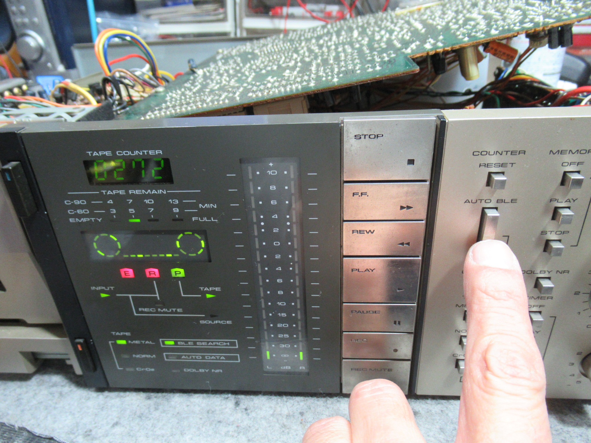 最近、PIONEERのCT-970の修理が続いています。もう4度目ですので、メカの修理は手慣れたものです。 しかし、このデッキには、メカの修理と同じくらい大変な作業があります。 それは、この操作ボタン …