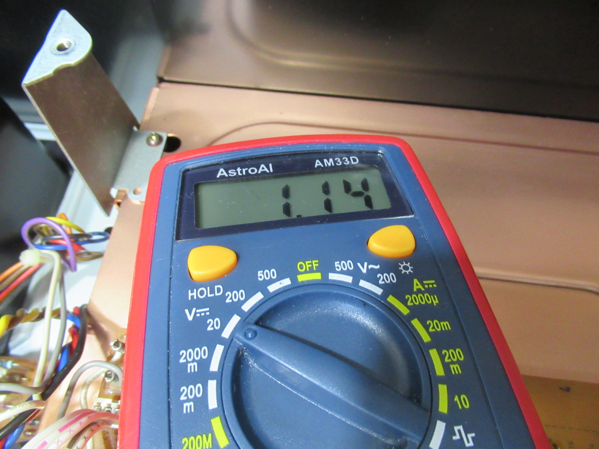 右側の半固定抵抗を回して、1.14Vに調整します。