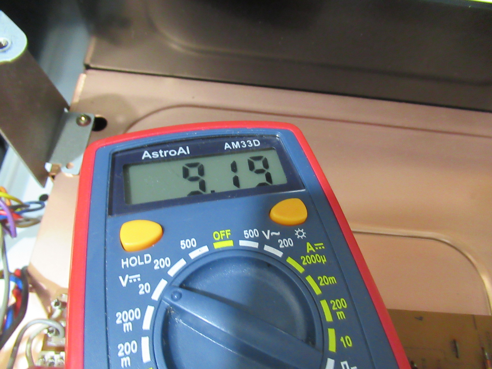 左側の半固定抵抗を回し、9.19Vに調整します。