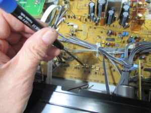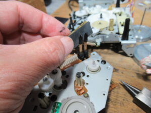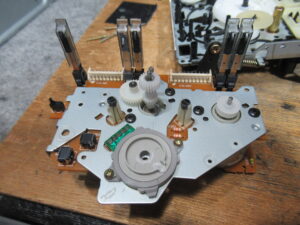 これは、メカを上下で固定しているビスですが、下部2本は上部2本と比べ短いものが使用されています。上下間違うとヘッド周りと干渉してうまく動作しませんので、DIYされる方はご参考としてください。SONYの機器では同じようなトラップ?がほかにも多くあります。