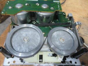 新しいキャプスタンベルトを掛けます。リバース機は左右が逆方向に回転します。