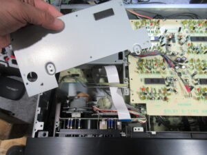 カバーを開けて、メカ上部のプレートを取り外します。