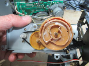 かなり久しぶりのXK-S7000です。 6年前に故障したものの、依頼した電器店に「修理できない」と断られ、現在に至るということです。 電動トレイが開きません。モーター音は聞こえます。 カバーを開けまし …