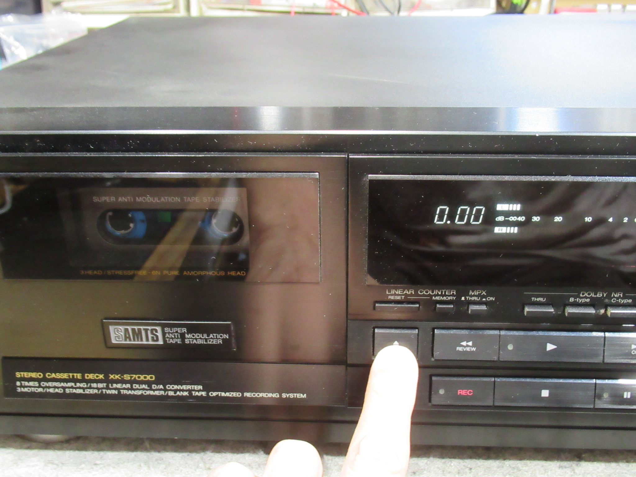 AIWA社製3ヘッドデュアルキャプスタンカセットデッキ、XK-S7000の修理依頼をいただきました。 久しぶりに使用したところ故障していたということです。 内部からモーター音が聞こえますが、イジェクト …