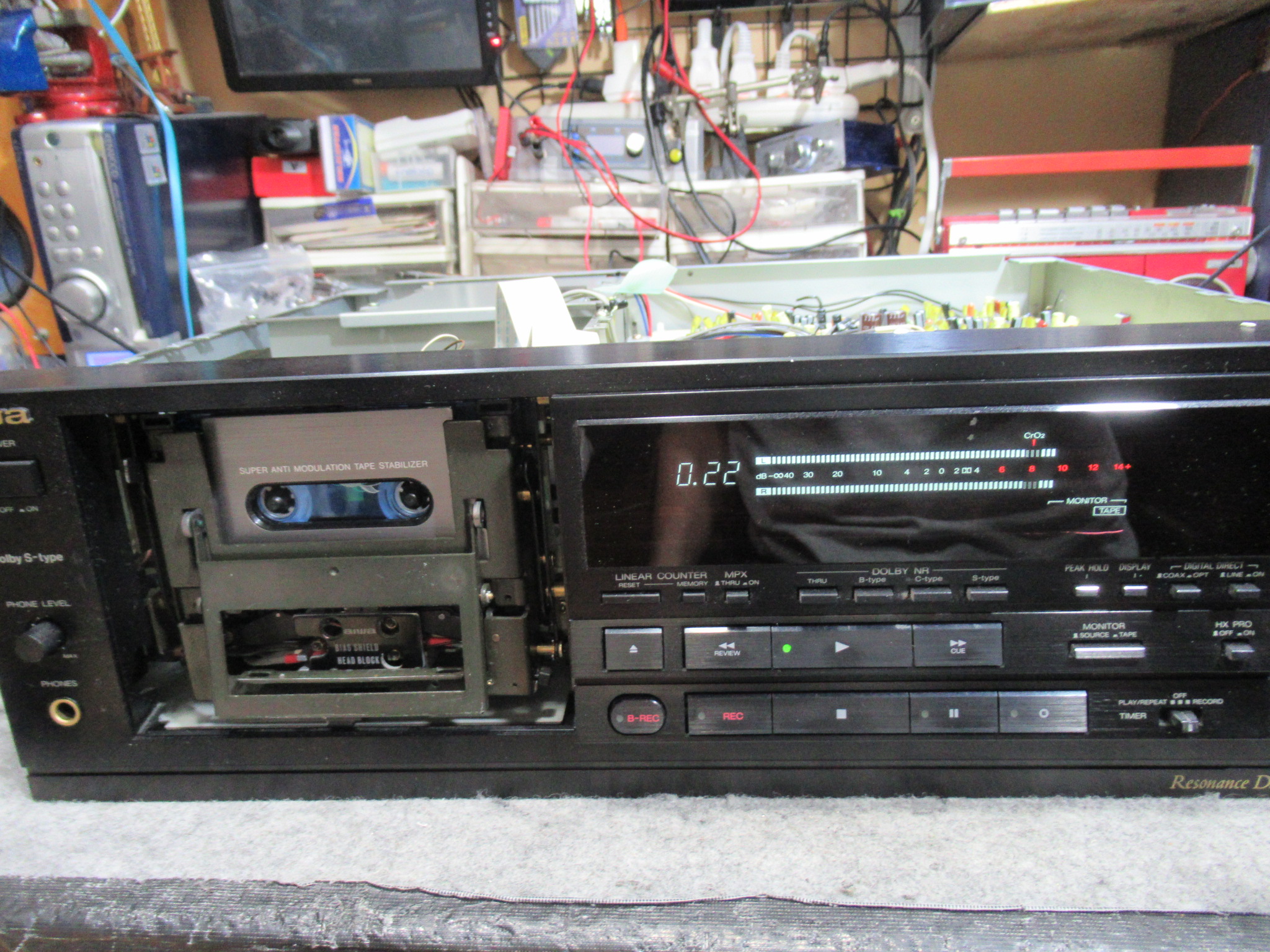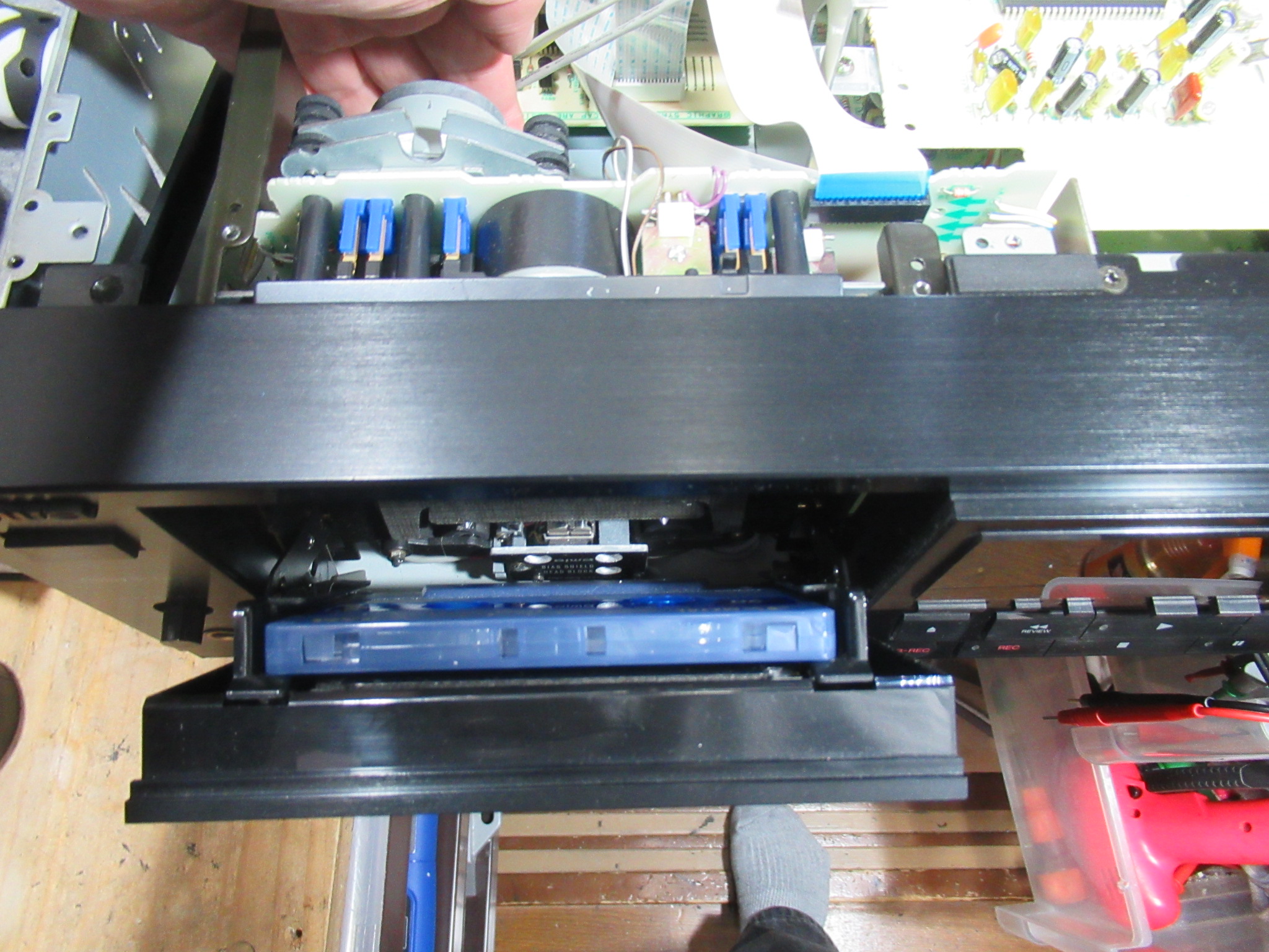 AIWA製3ヘッドデュアルキャプスタンカセットデッキ、XK-S7000の修理依頼をいただきました。 3年ほど前に他店で修理後、当初から調子が悪く、また、最近になってトレイが開かなくなったということで当 …