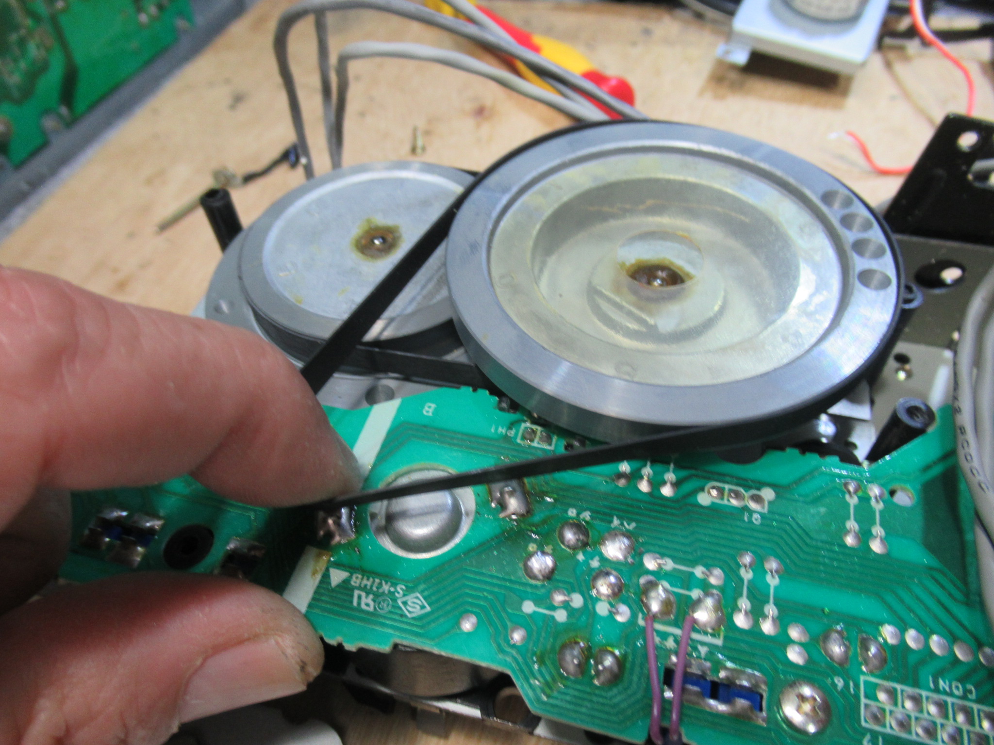 モータープレートを取り外し、キャプスタンベルトを交換します。